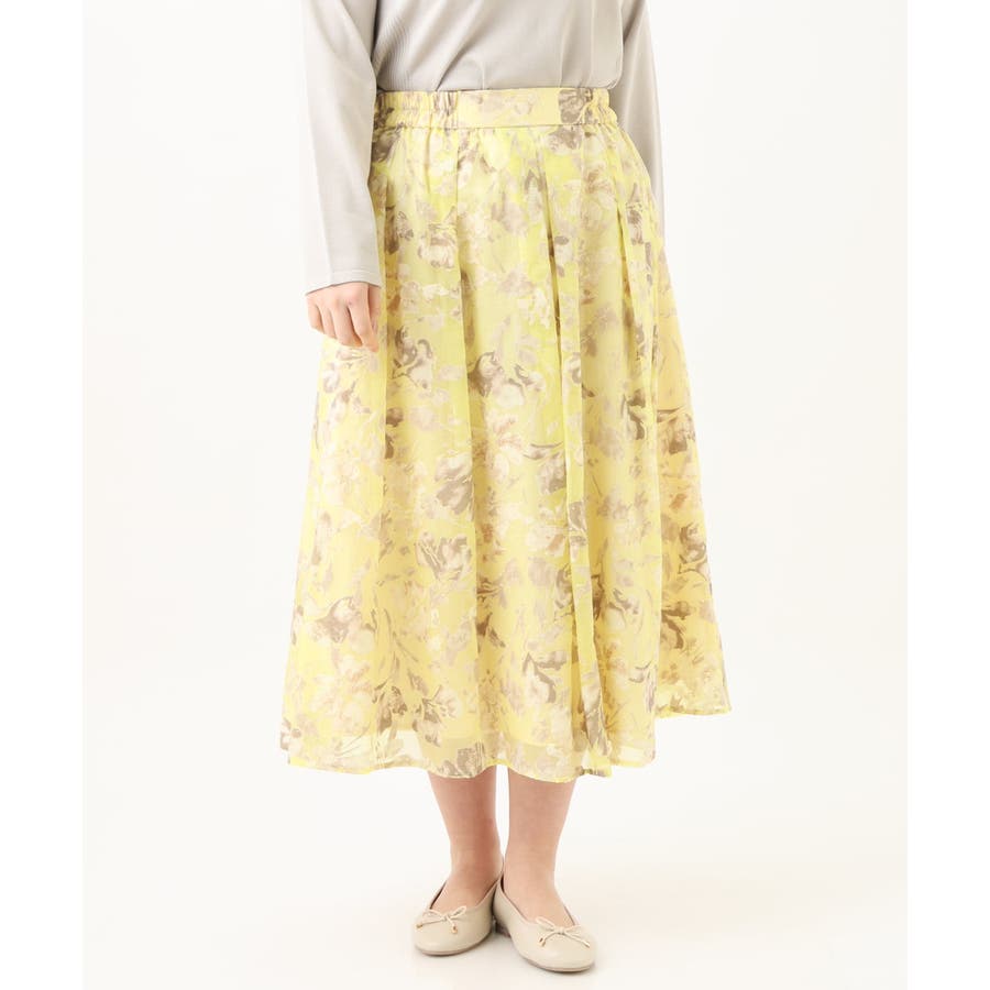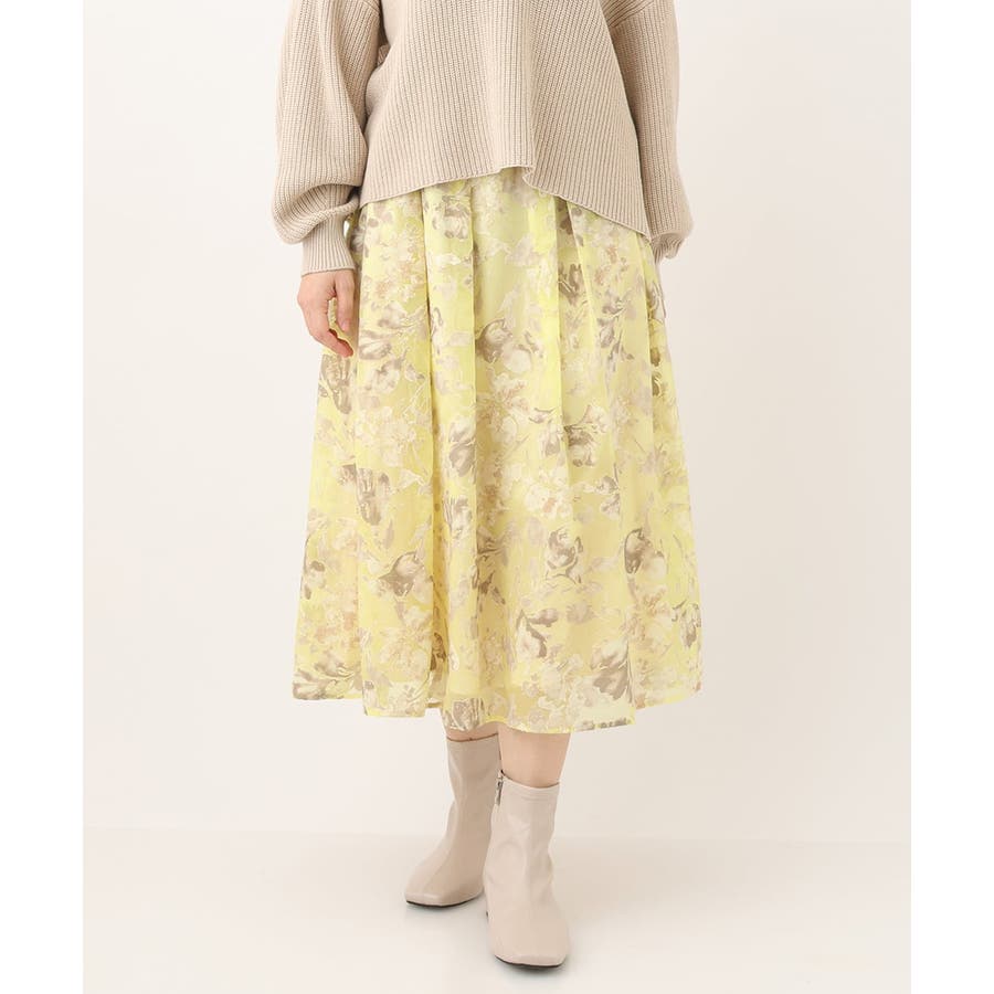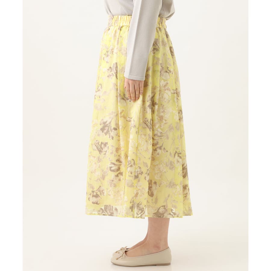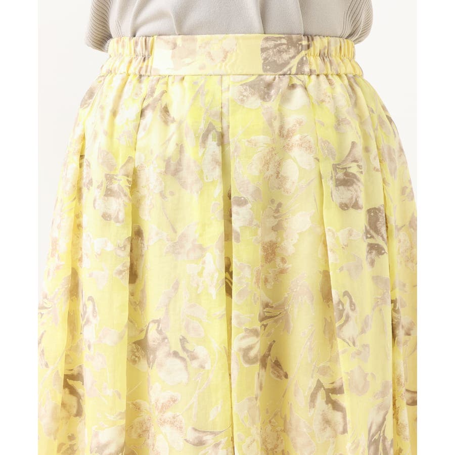 今年らしいシアーで少し張りのあるオパール生地は春らしいスタイリングのポイントになるイエローベースのフラワープリント。