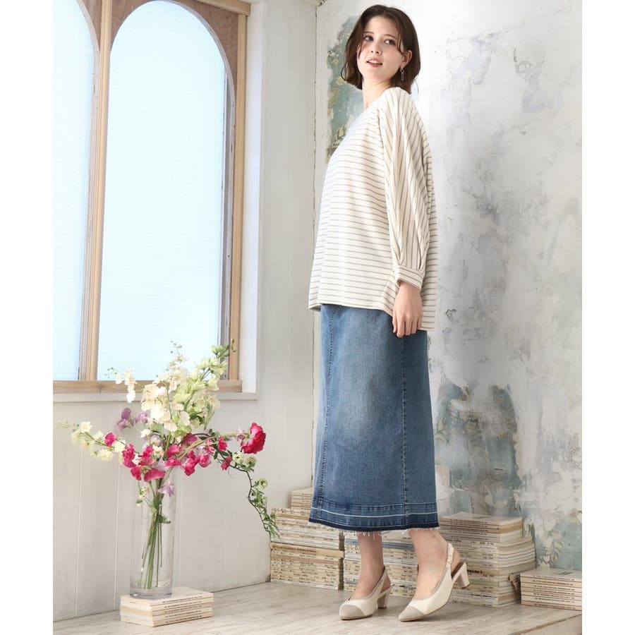 着回し力抜群の、すっきりとしたタイトシルエットのデニムスカートです。
