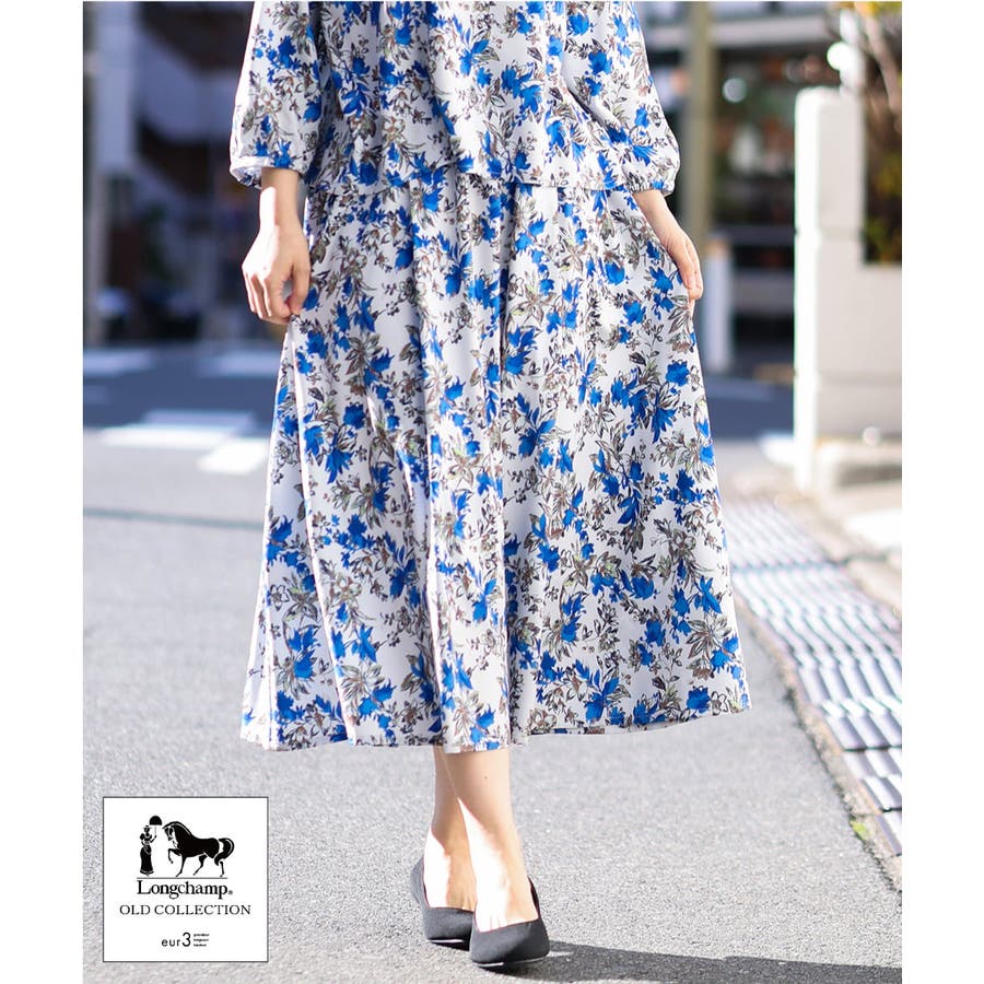 ロンシャン オールドコレクションのプリントアーカイブよりセレクトしたフラワープリントを柔らかな落ち感のある合繊素材にのせています。