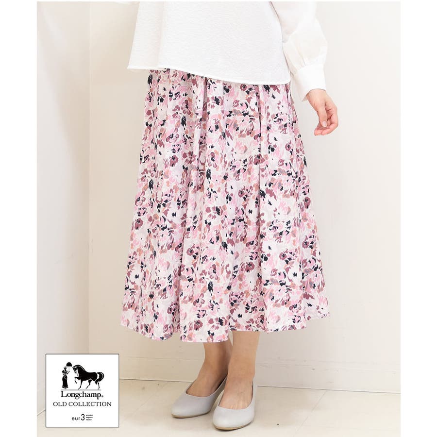 【大きいサイズ】【ロンシャン オールドコレクション】フラワープリントスカート
