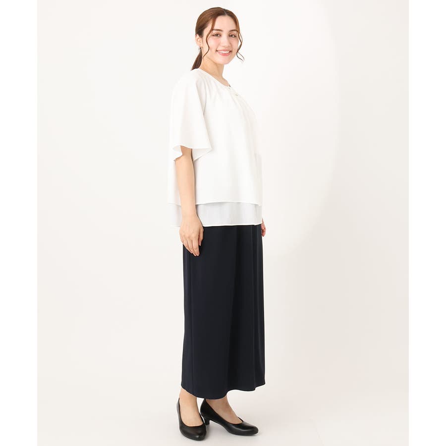 ベスト(品番OLCIA26119)とセットアップで着用するときちんと感があり、お仕事スタイルにもおすすめ。