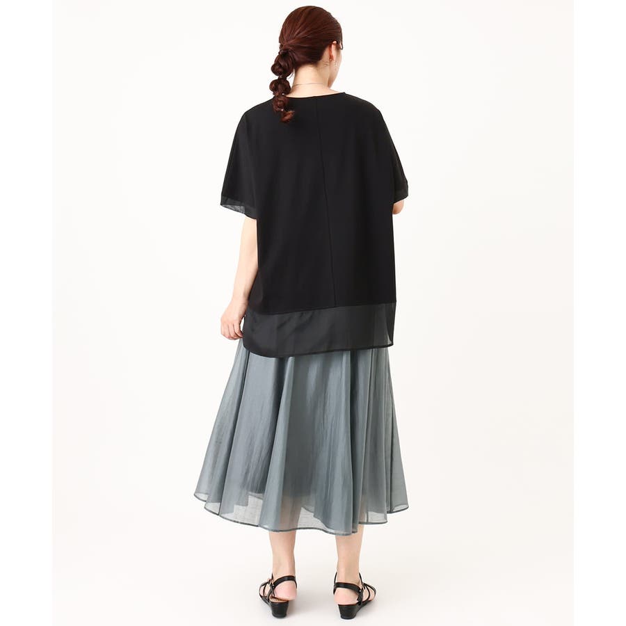 落ち感のある生地を膝上からマチを切り替えたシルエットで