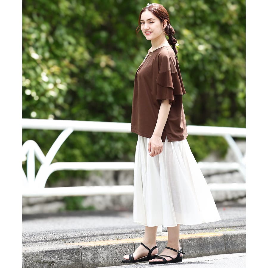 Tシャツを合わせたカジュアルなスタイル、ブラウスを合わせたきれいめスタイルどちらにも活躍します。