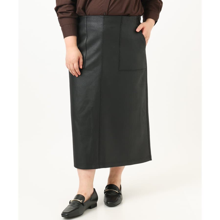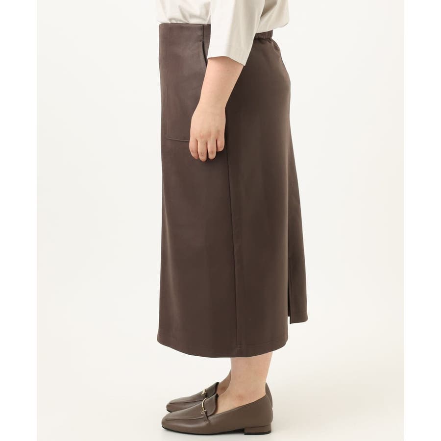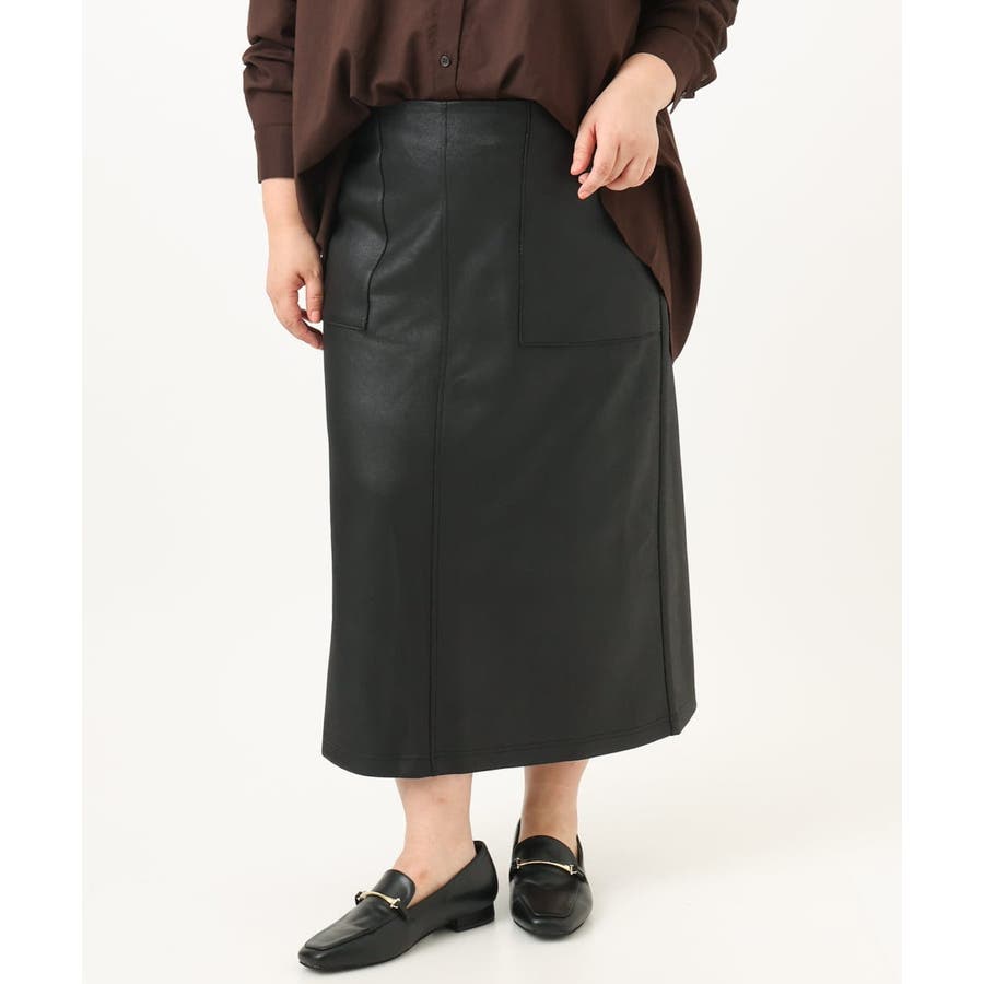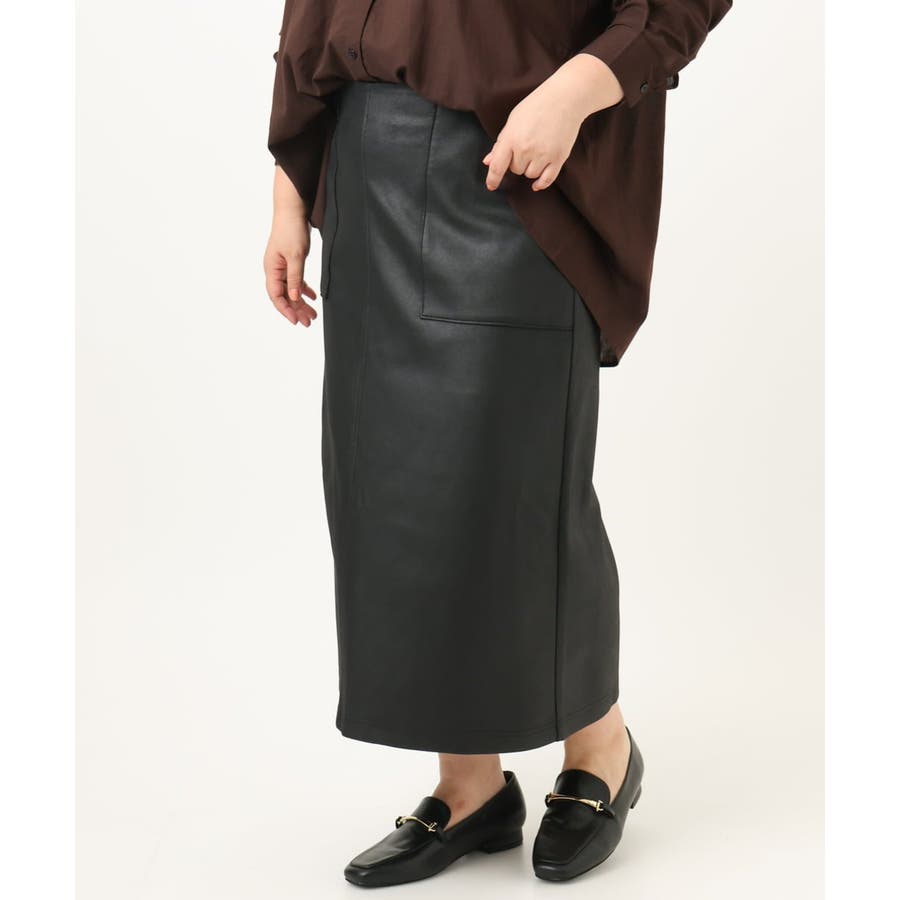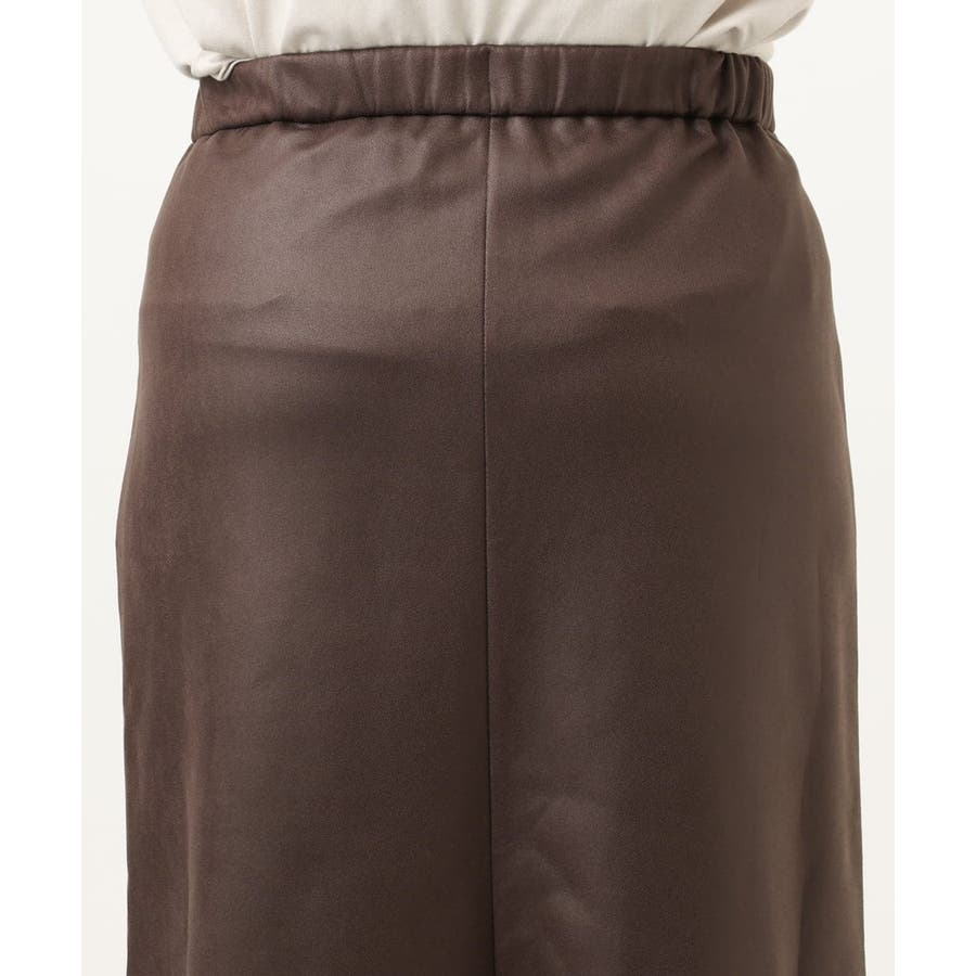ミディ丈のタイトシルエットはヒップや脚のラインを拾いすぎず、すっきりとした印象に。