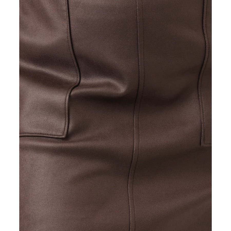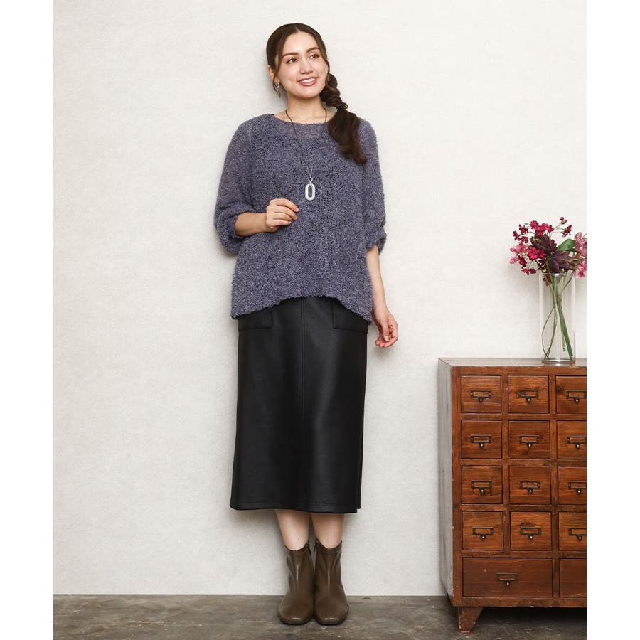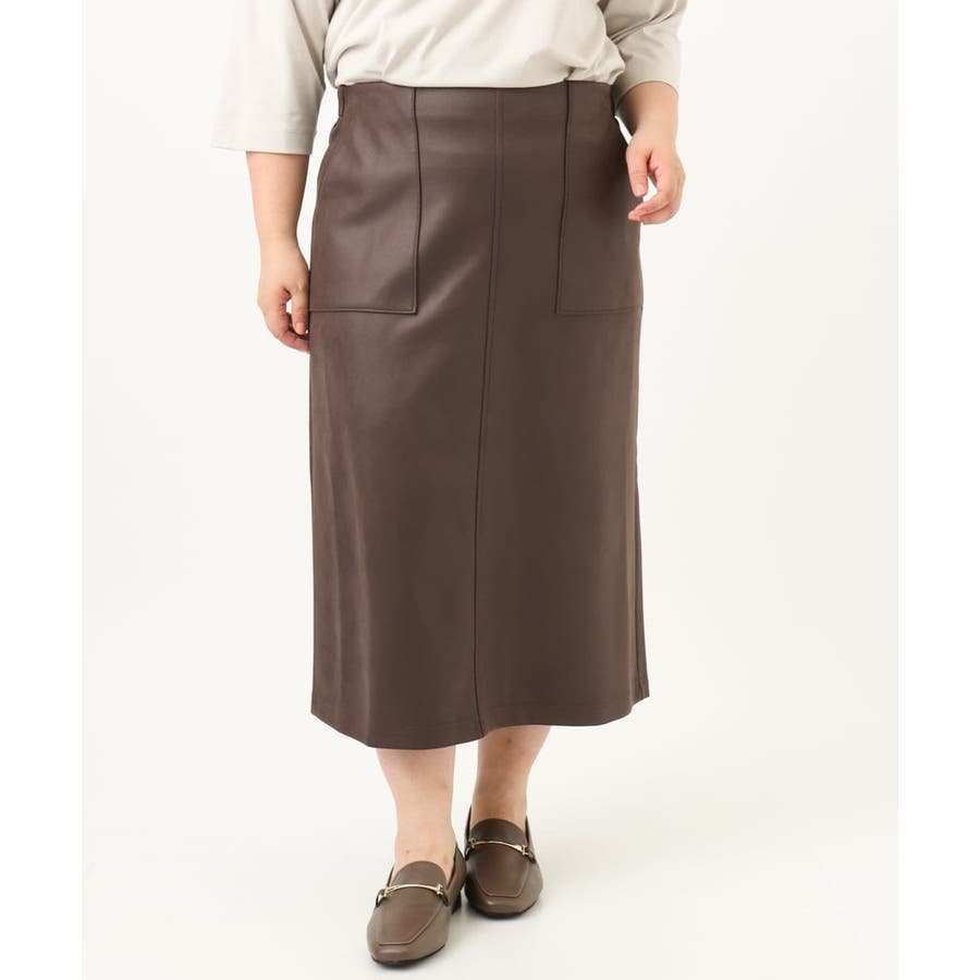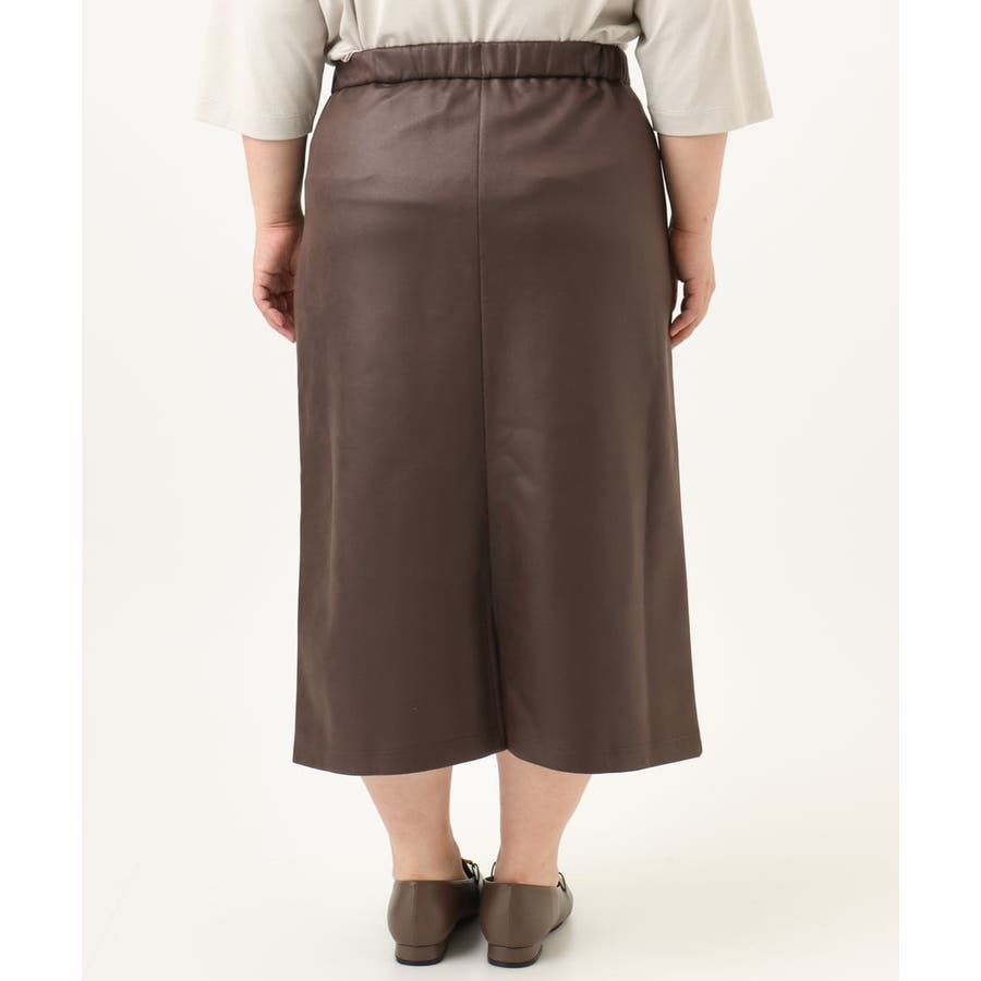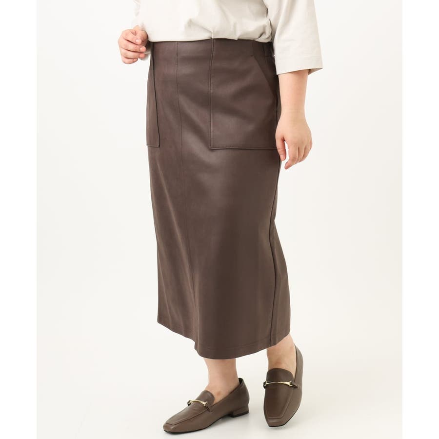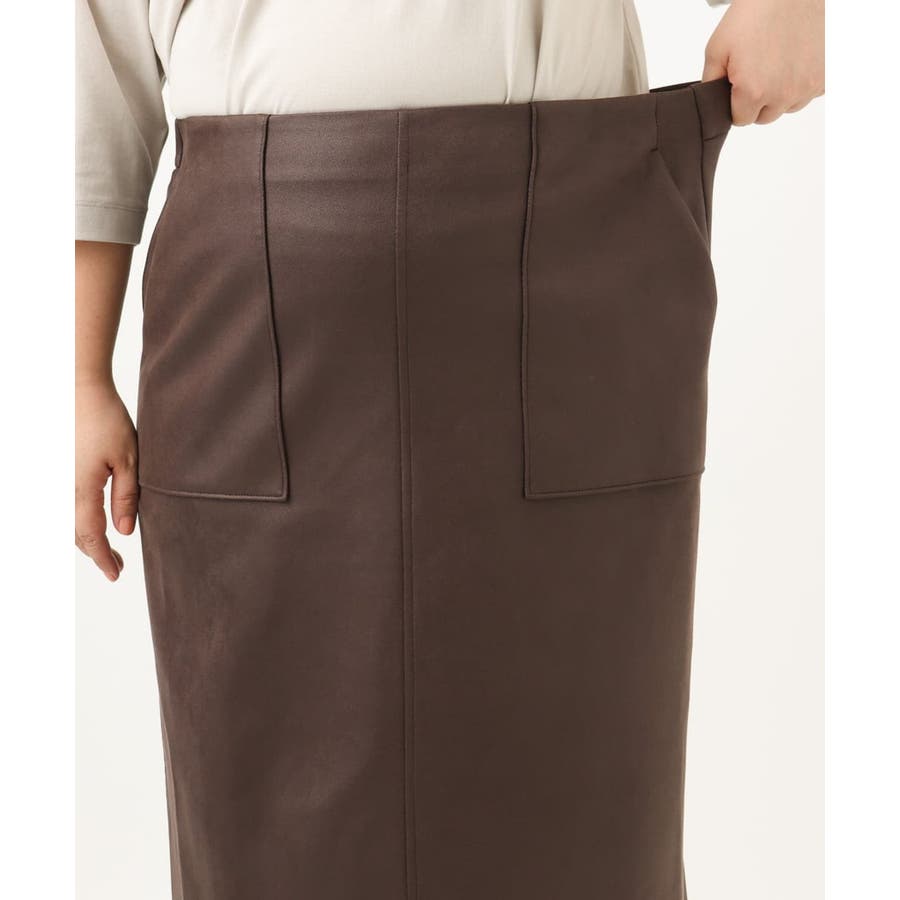 ミディ丈のタイトシルエットはヒップや脚のラインを拾いすぎず、すっきりとした印象に。
