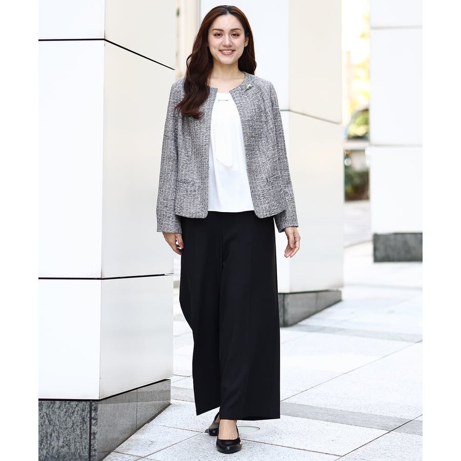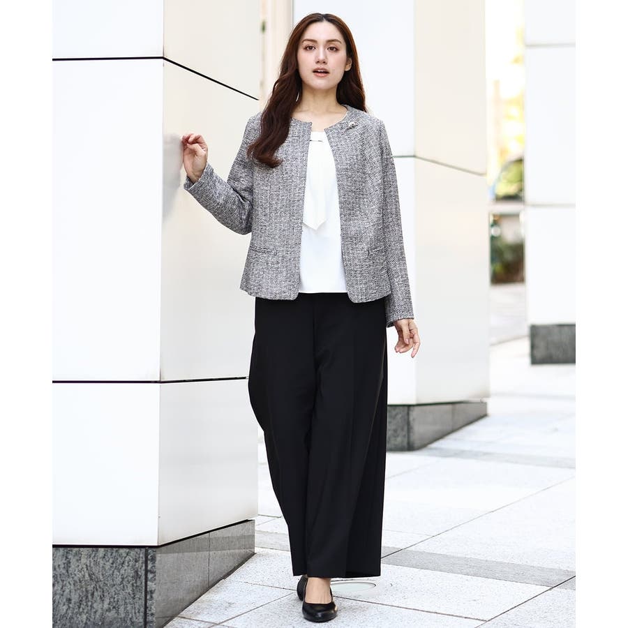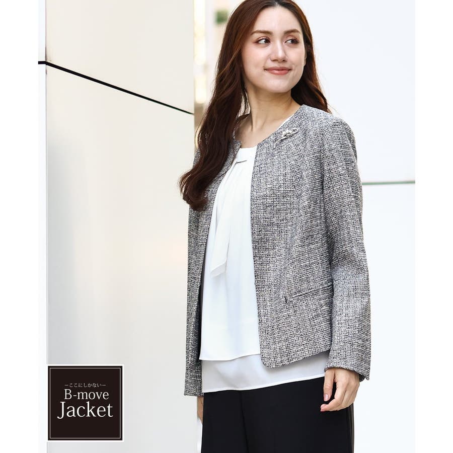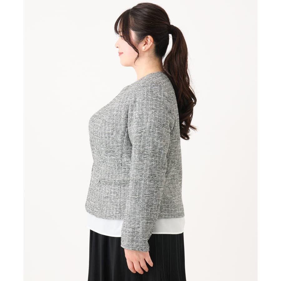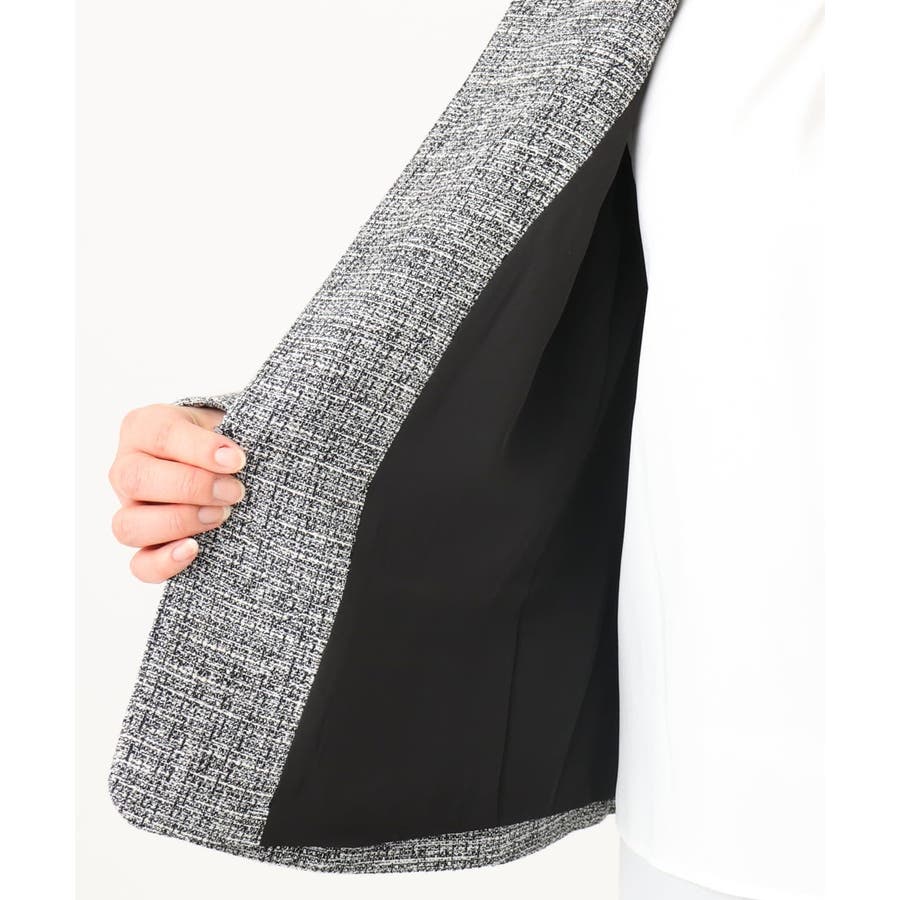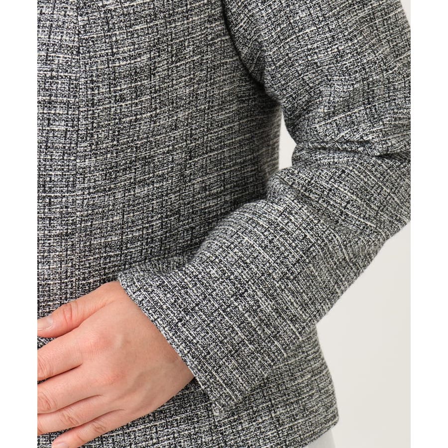 ツィード素材ですが、少し伸縮性もあるので、ジャケットでも着心地が良いです。