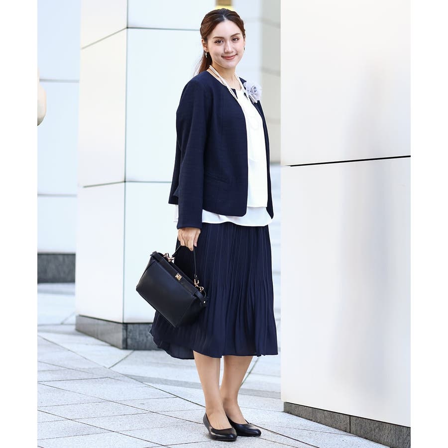 スカートやワンピースにすっきりと合わせられ、上品な着こなしが叶います。