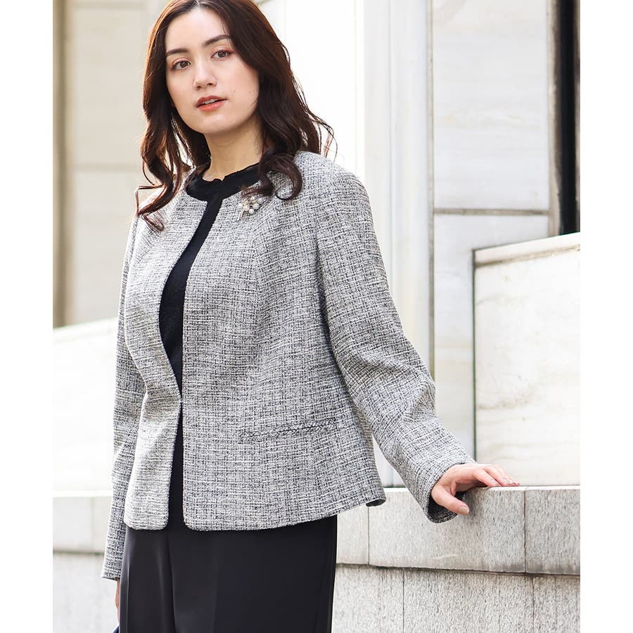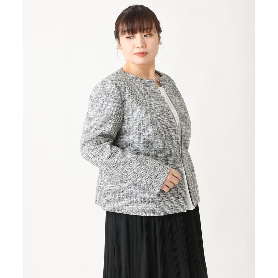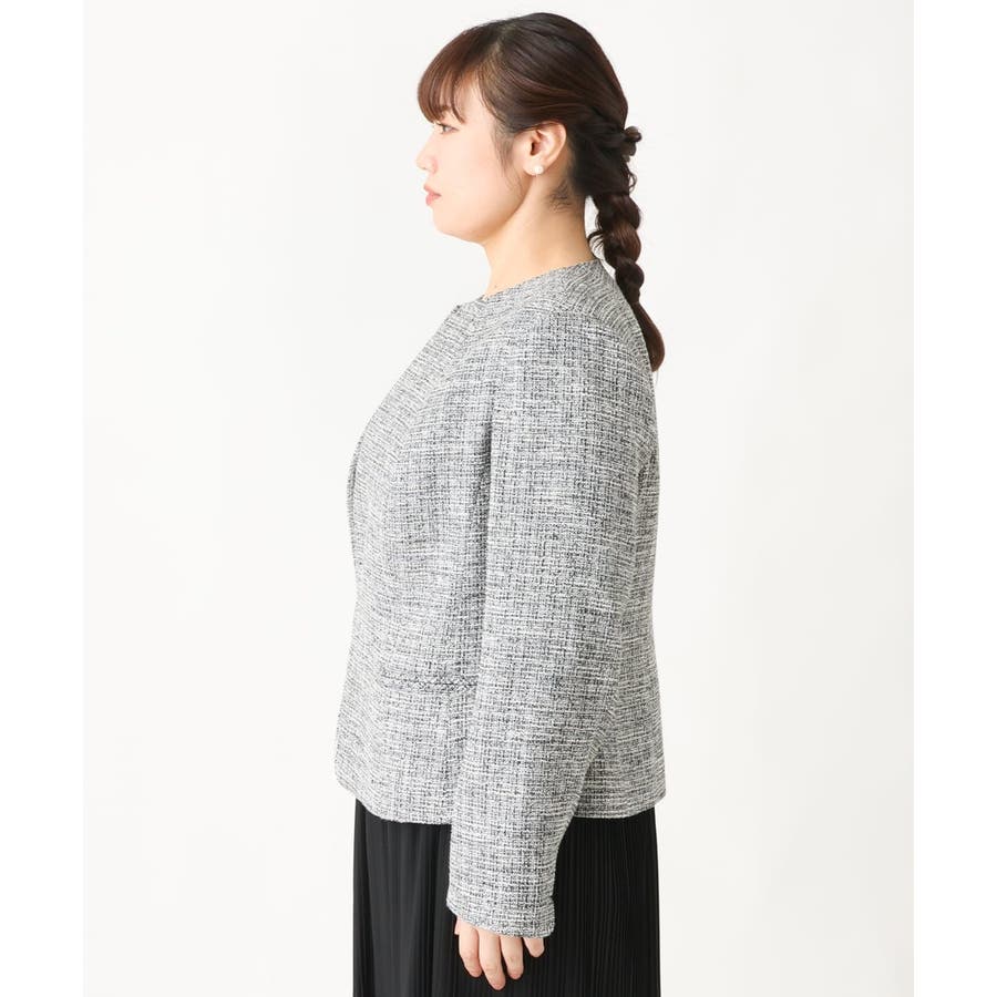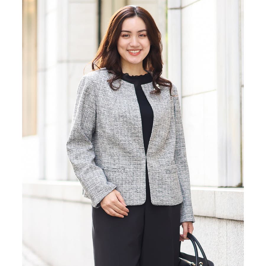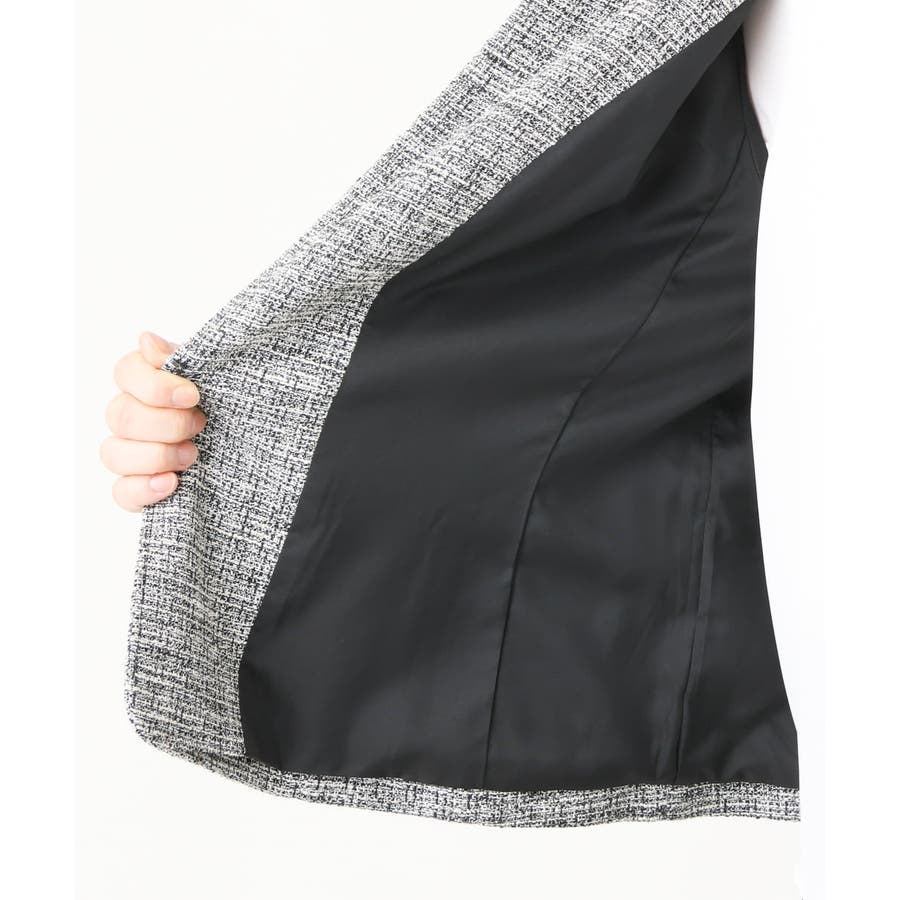 ツィード素材ですが少し伸縮性もあるのでジャケットでも着心地が良いです。