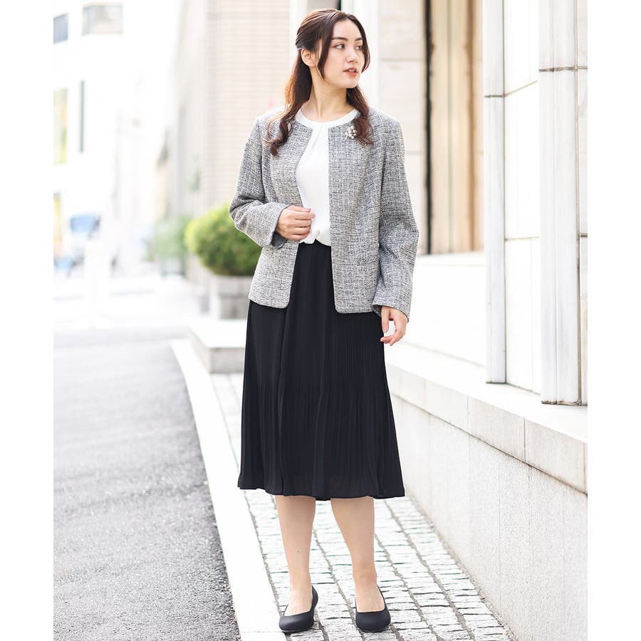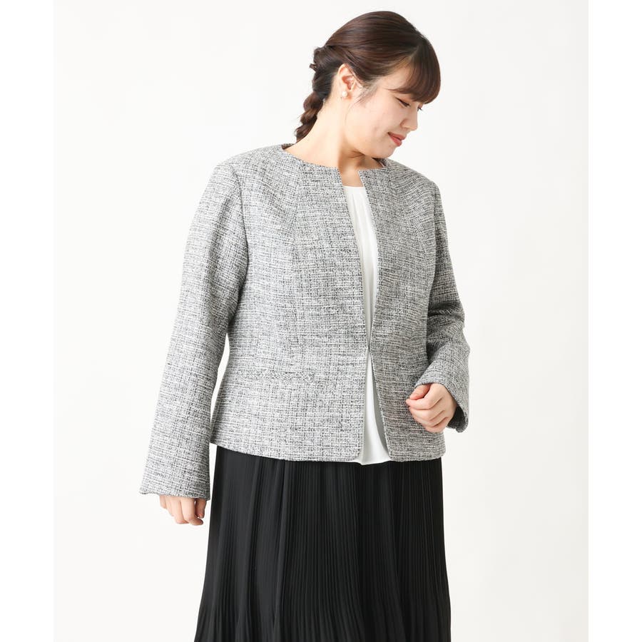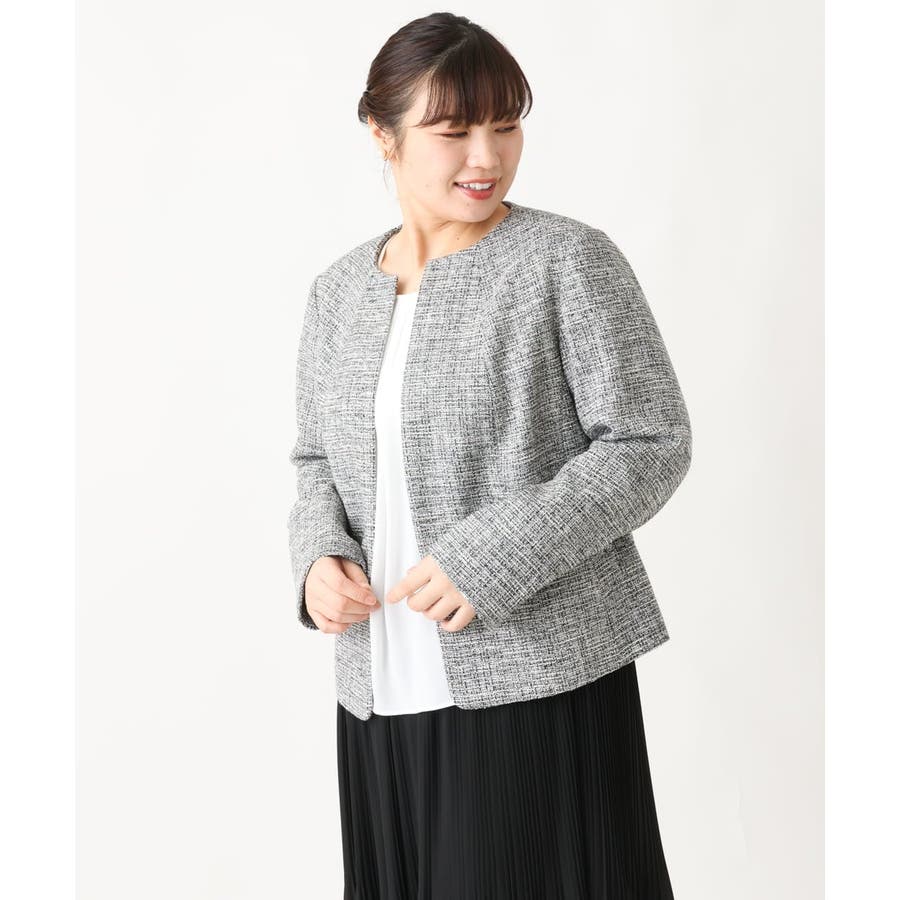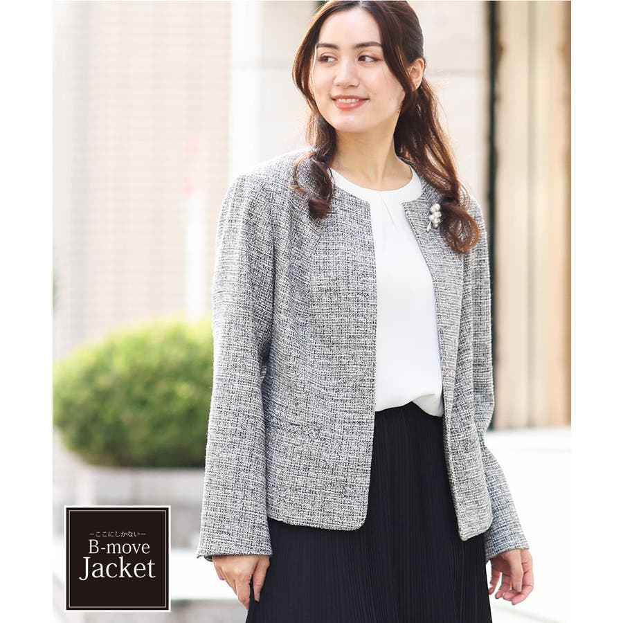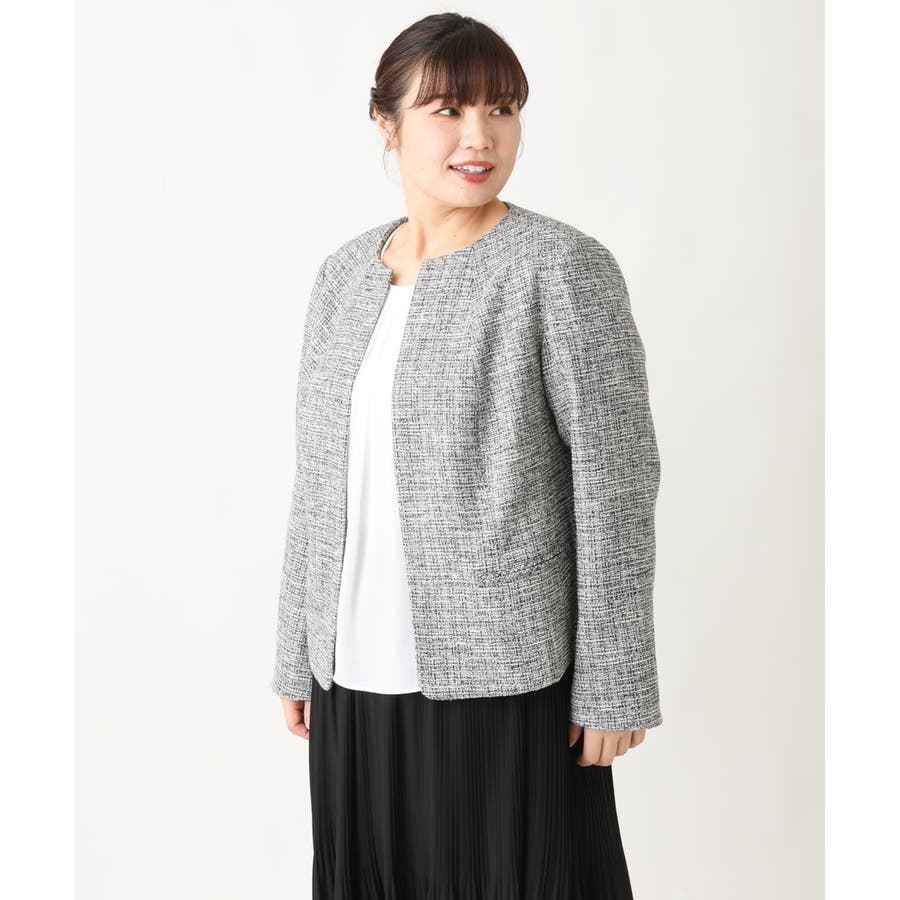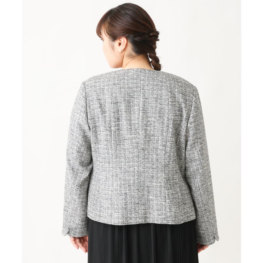 ツィード素材ですが少し伸縮性もあるのでジャケットでも着心地が良いです。