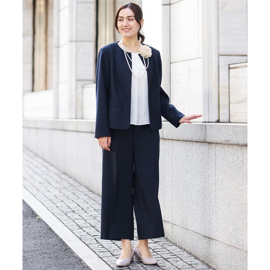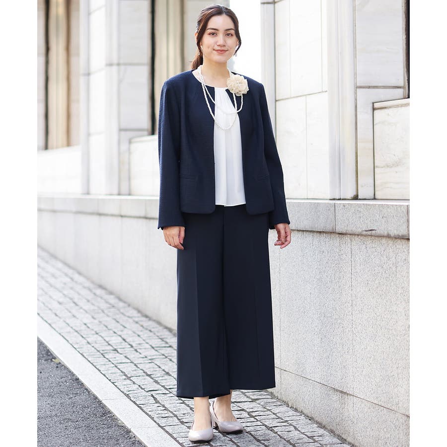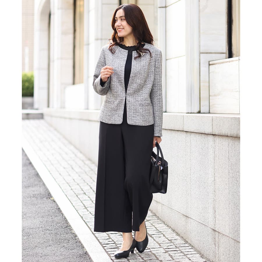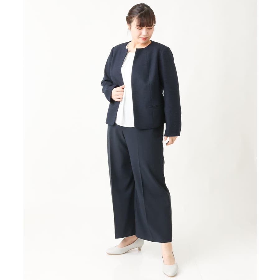 細見えなすっきりシルエットを追求した美シルエットなジャケットは前をあけてご着用いただいてもすっきり綺麗なシルエット。