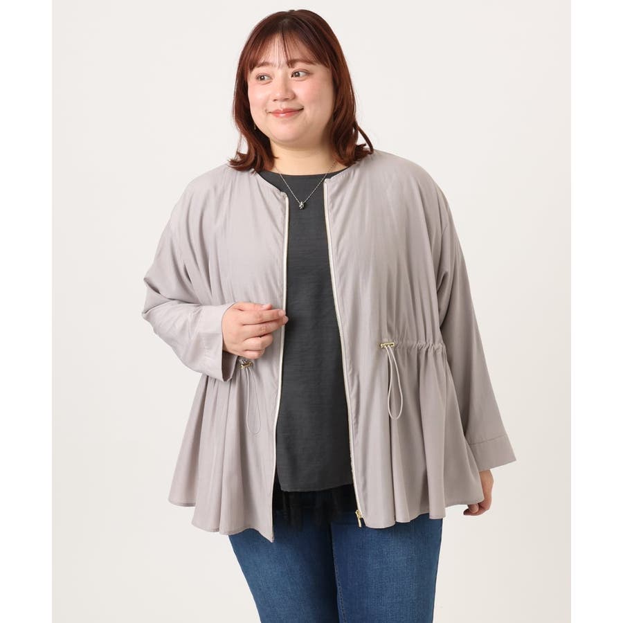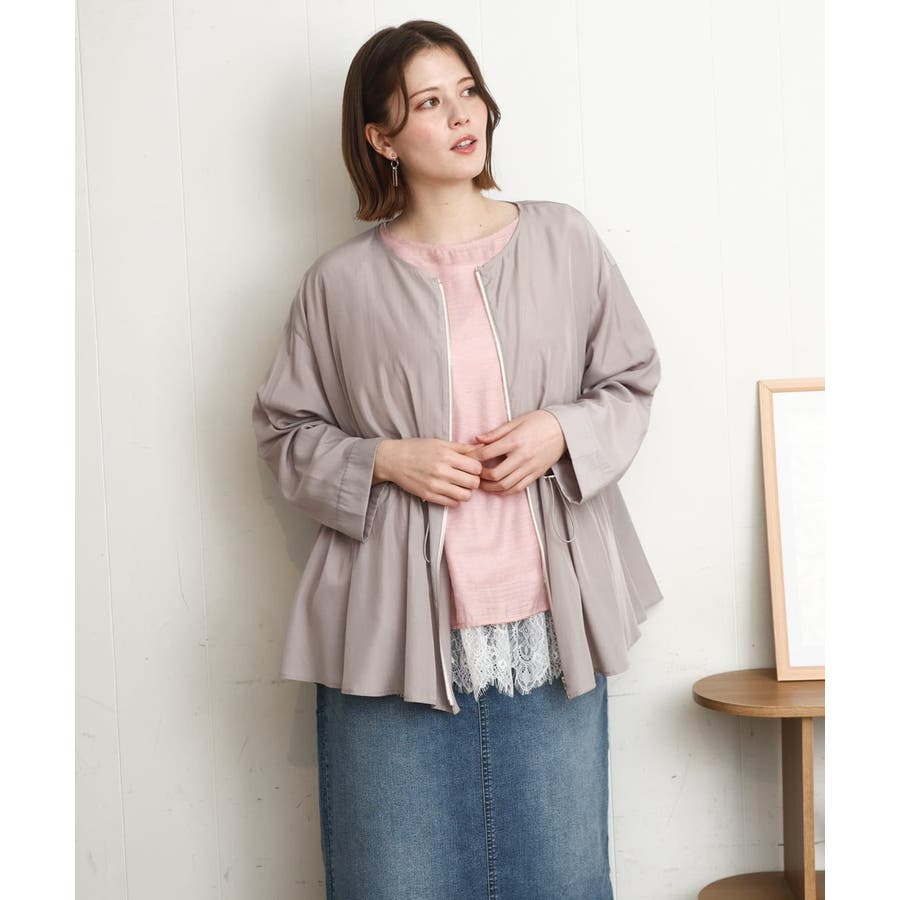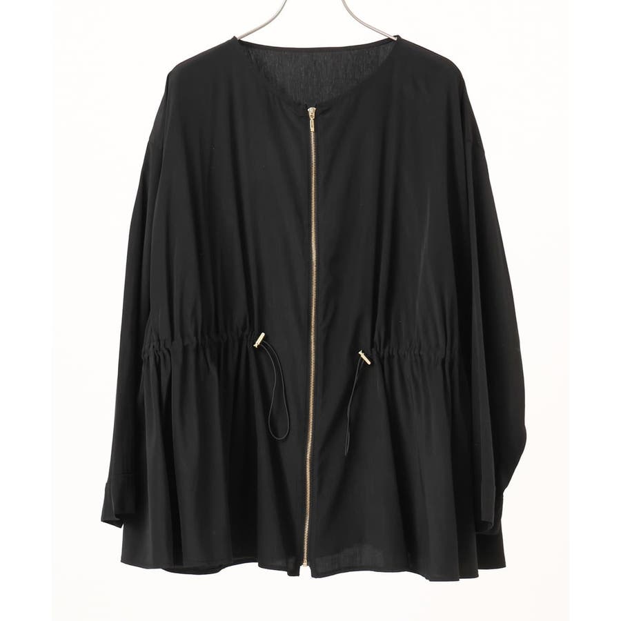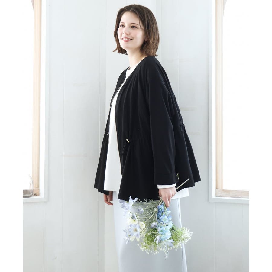 シンプルなノーカラーデザインに、ウエストドロストギャザーを施したトレンド感のあるブルゾンです。