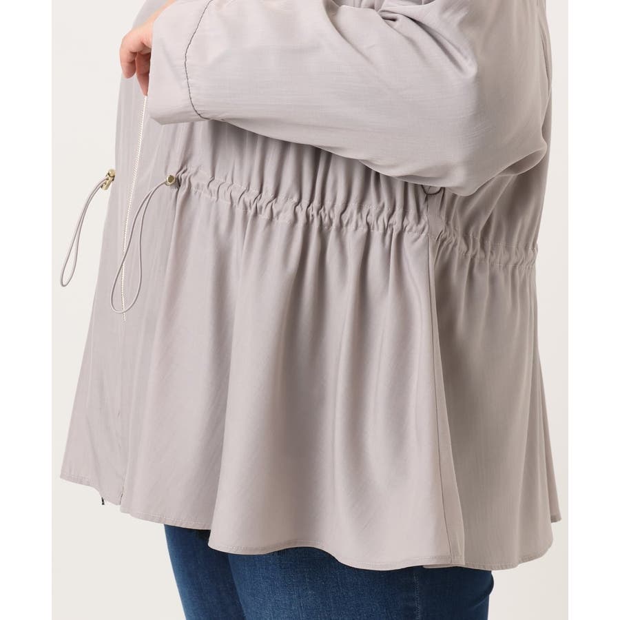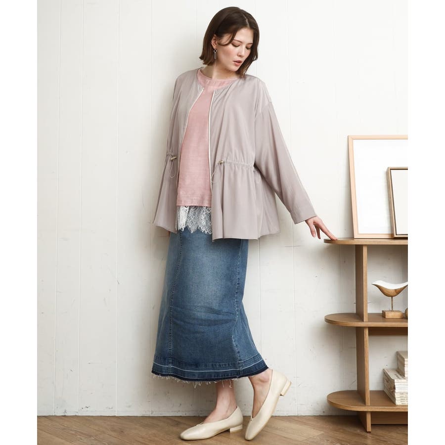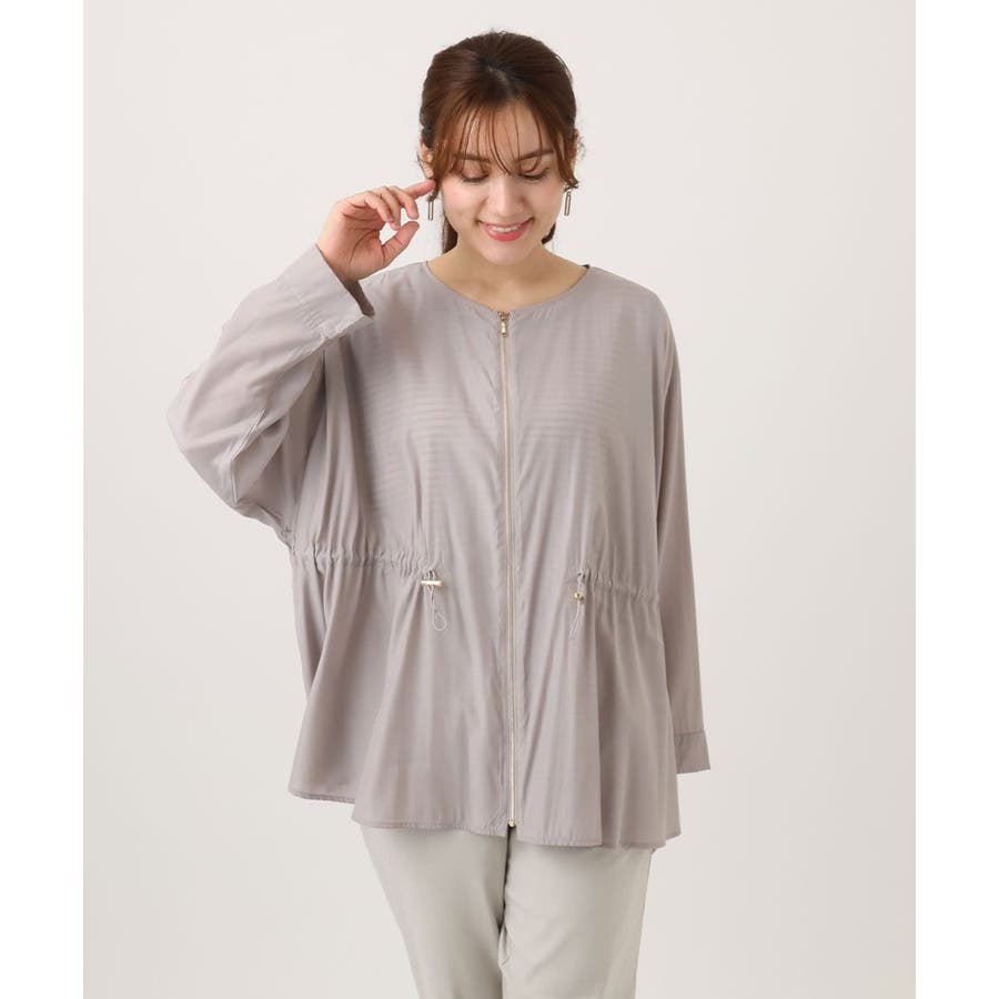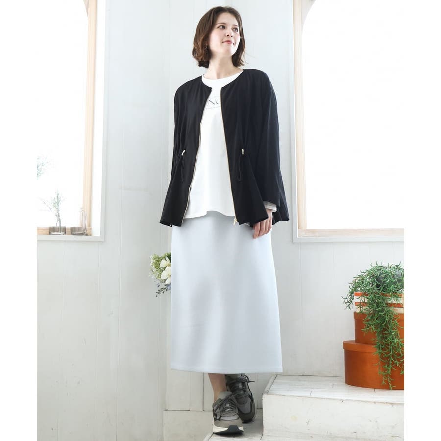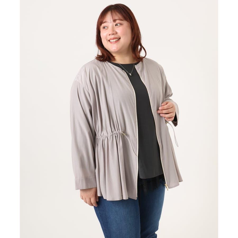 シンプルなノーカラーデザインに、ウエストドロストギャザーを施したトレンド感のあるブルゾンです。