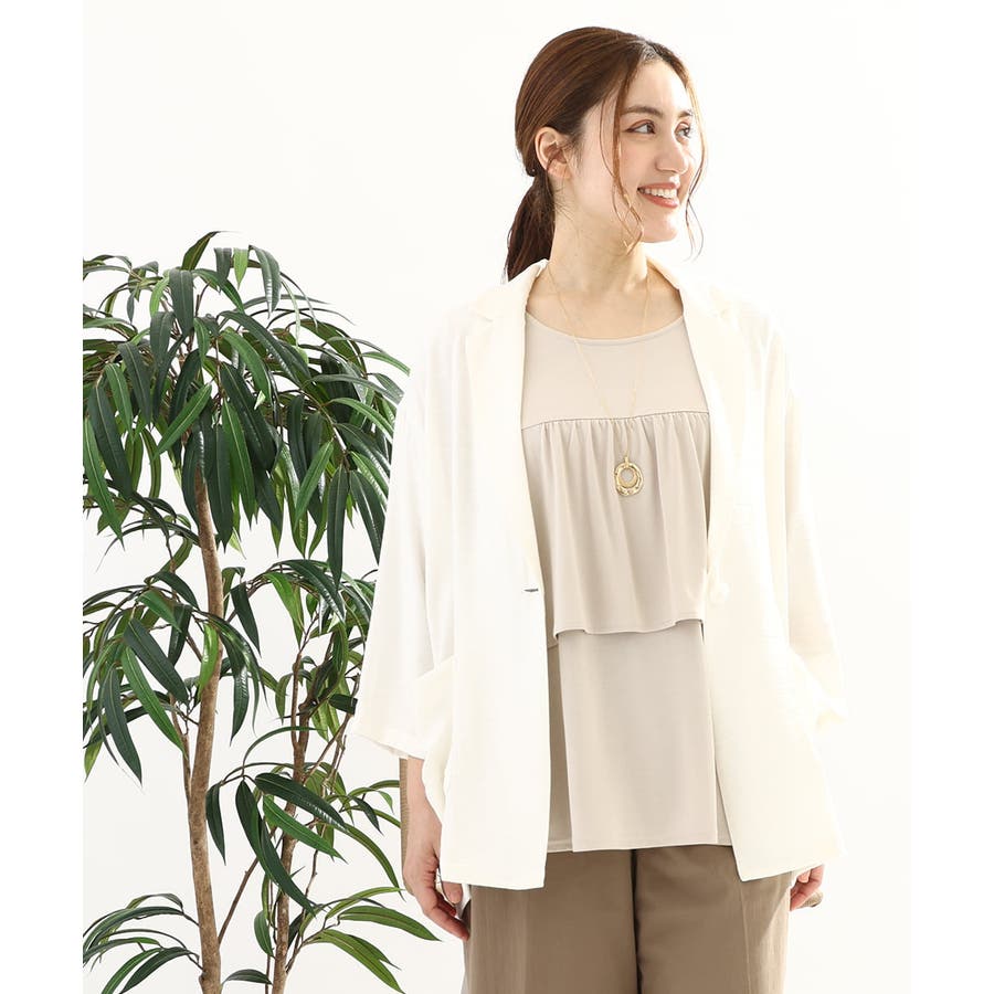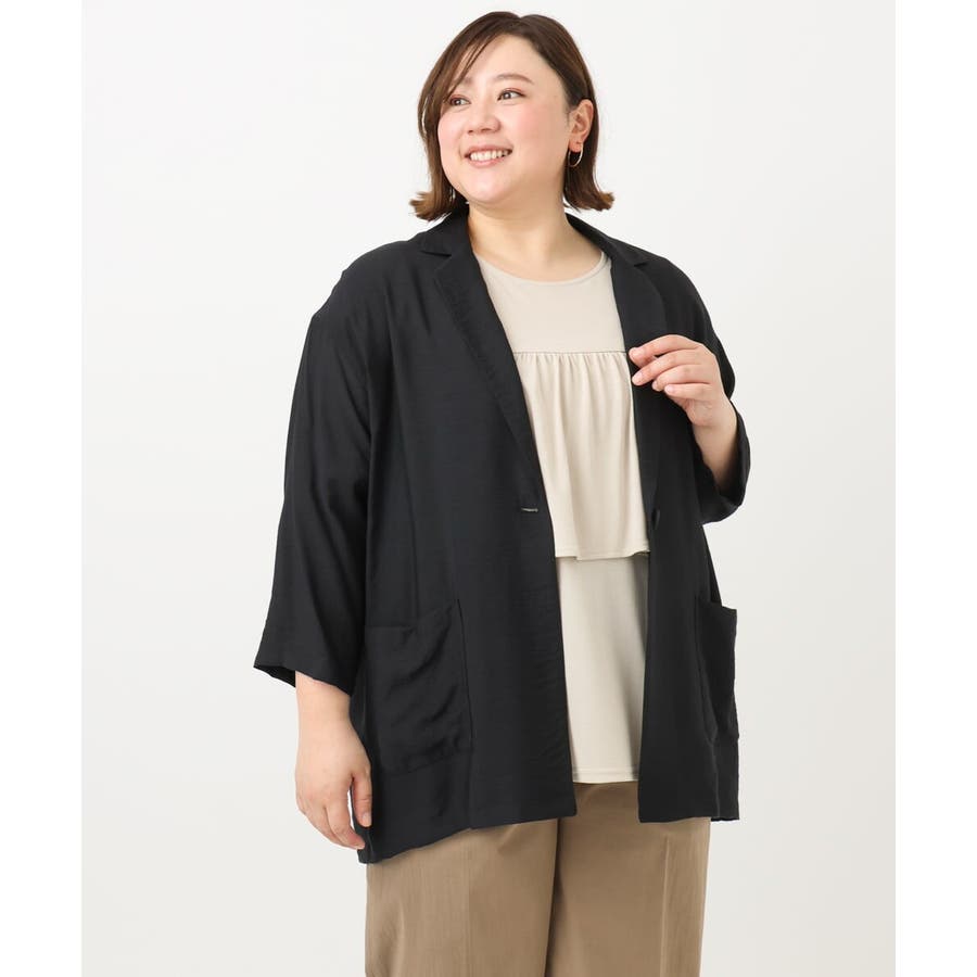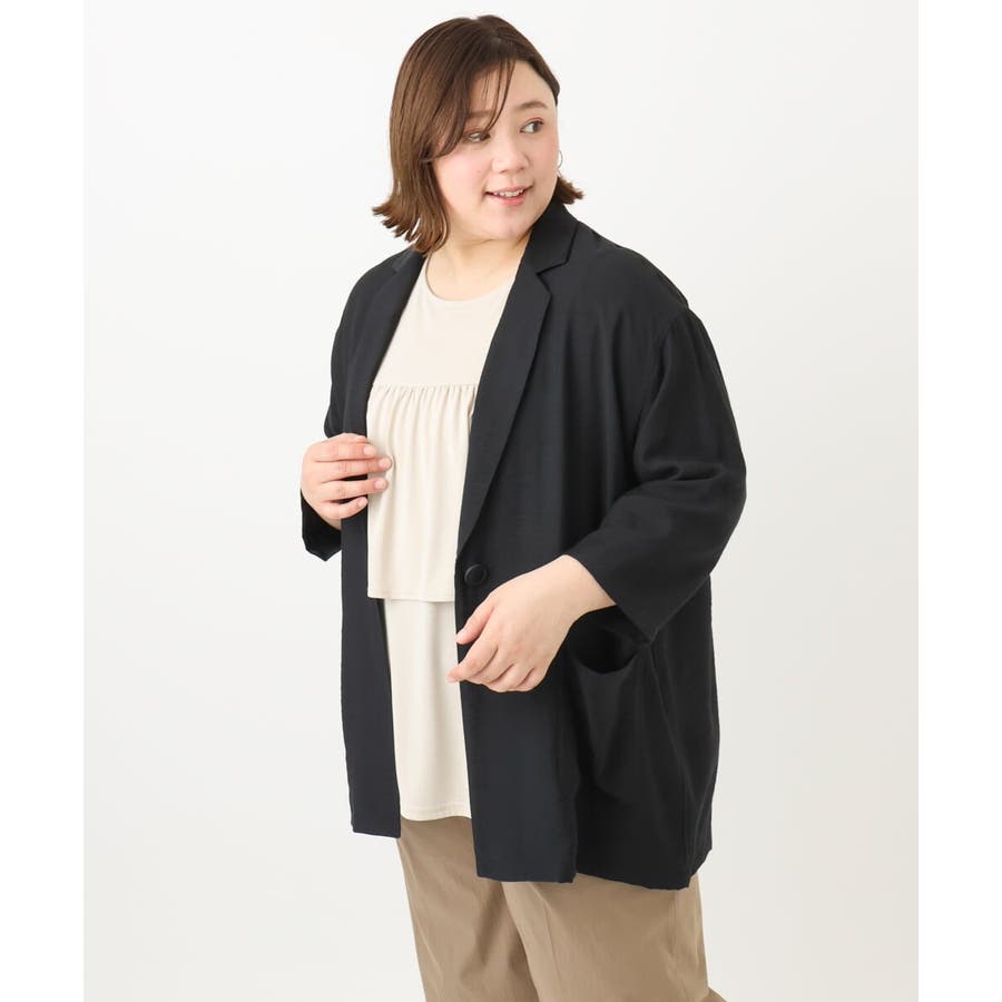 薄手シアーなシャツ素材でゆったりボクシーシルエットのテーラードジャケット。