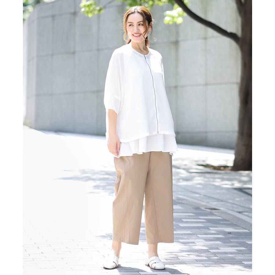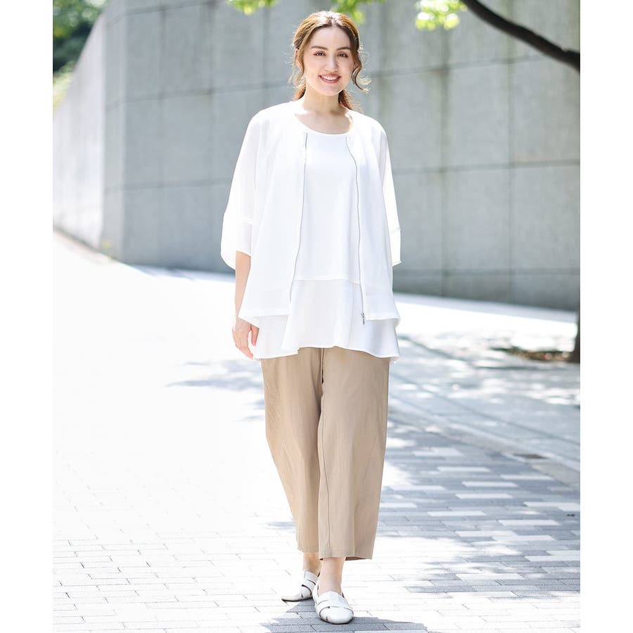OLKGA22059(シアーヘムタンク)を合わせて裾からサテンをのぞかせるスタイリングは体型カバーしながらもトレンド感がありおすすめです。