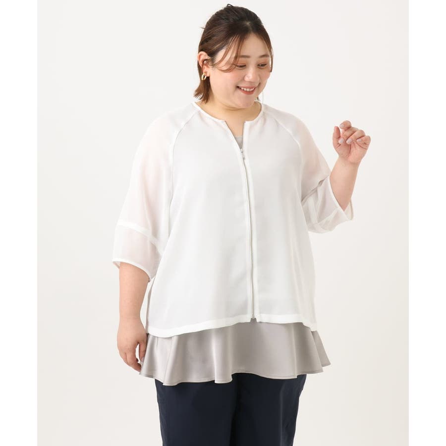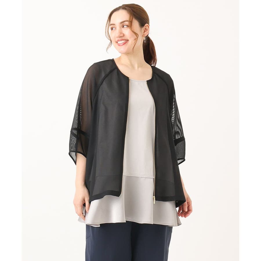 【大きいサイズ】コクーンスリーブメッシュジャケット