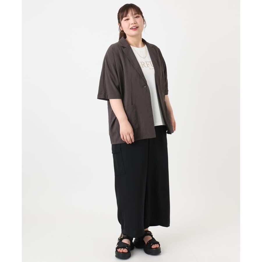 ロゴTに羽織るだけでこなれ感あるスタイルに。