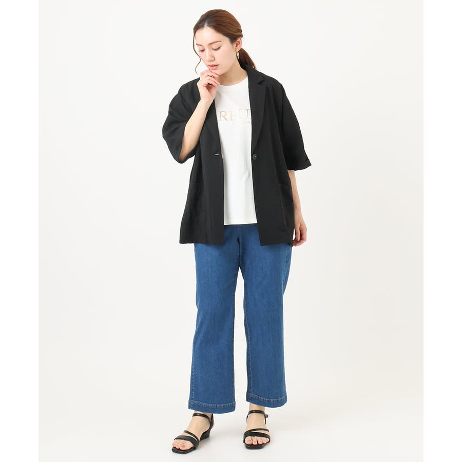 続き袖のひじ下まである安心袖丈は、抜け感のあるスタリイングにピッタリ。