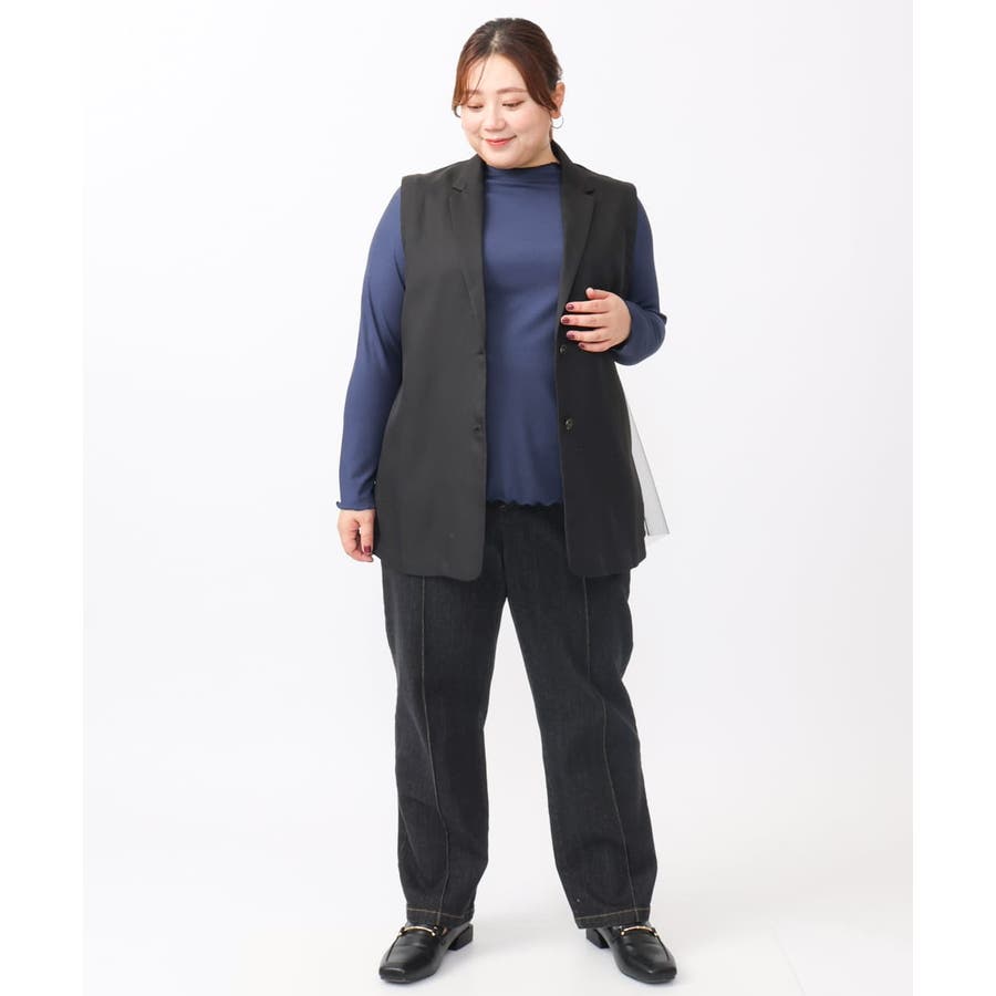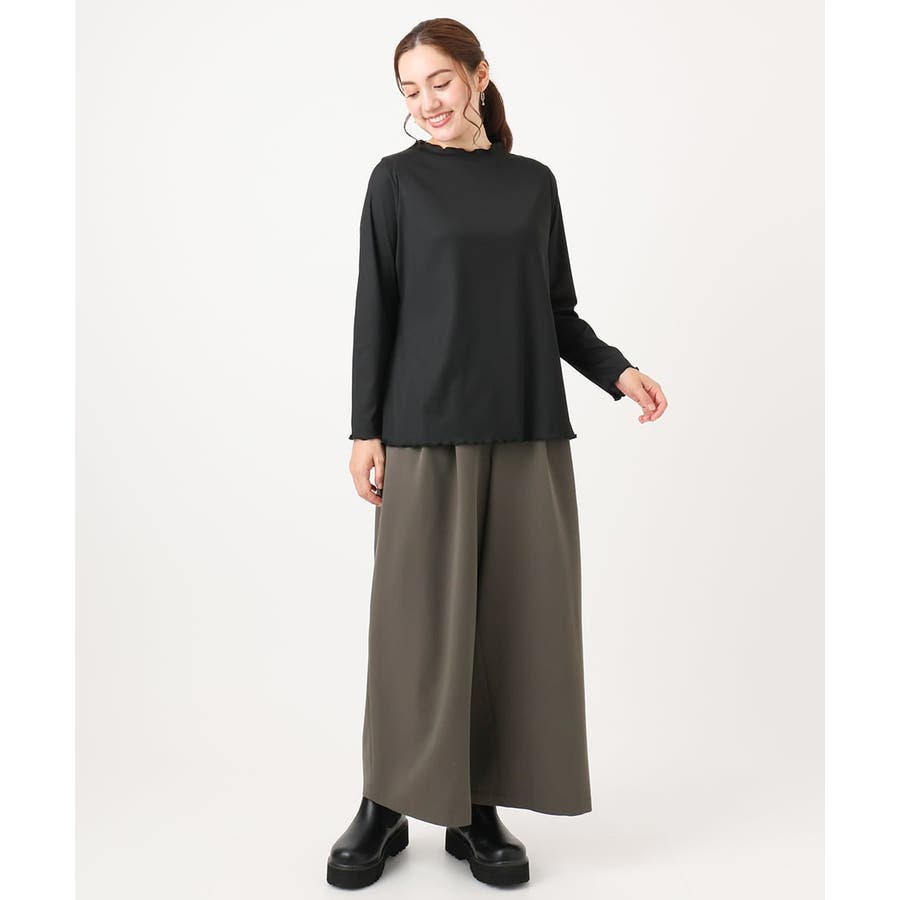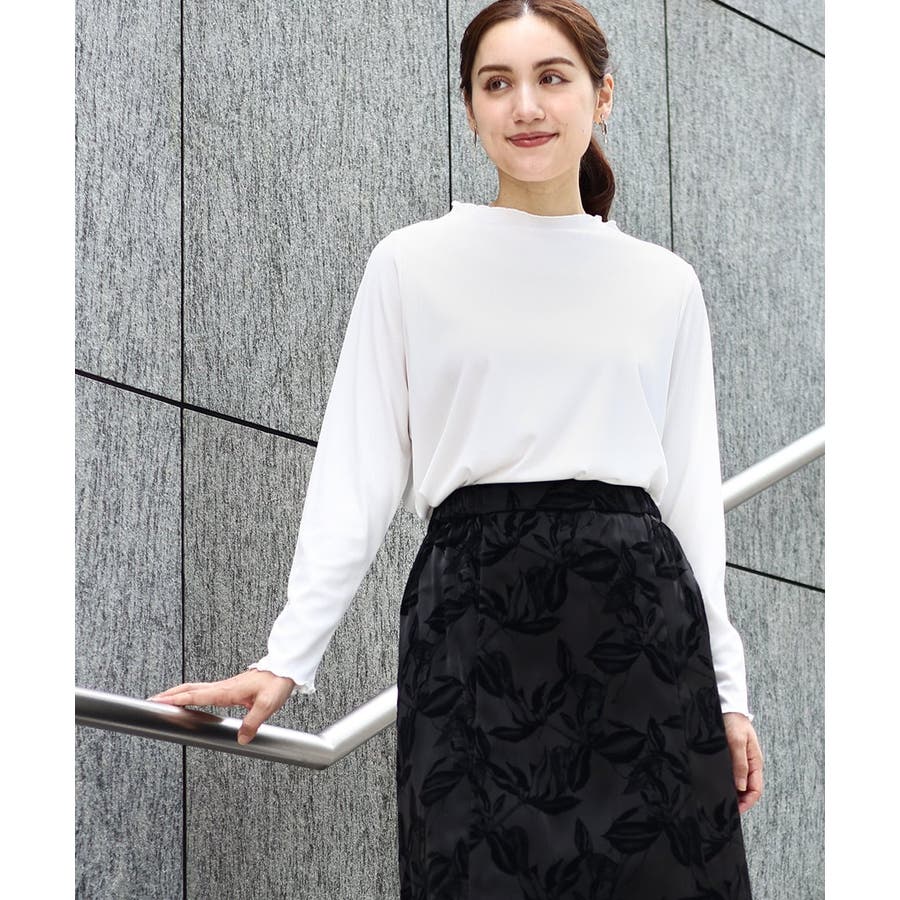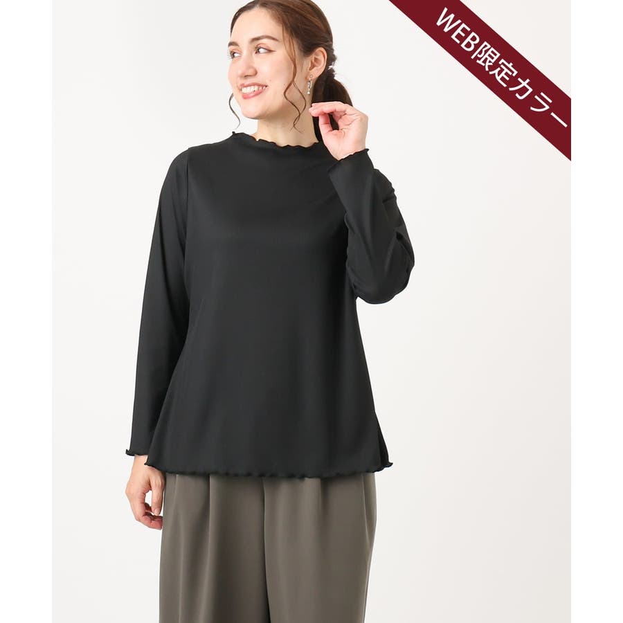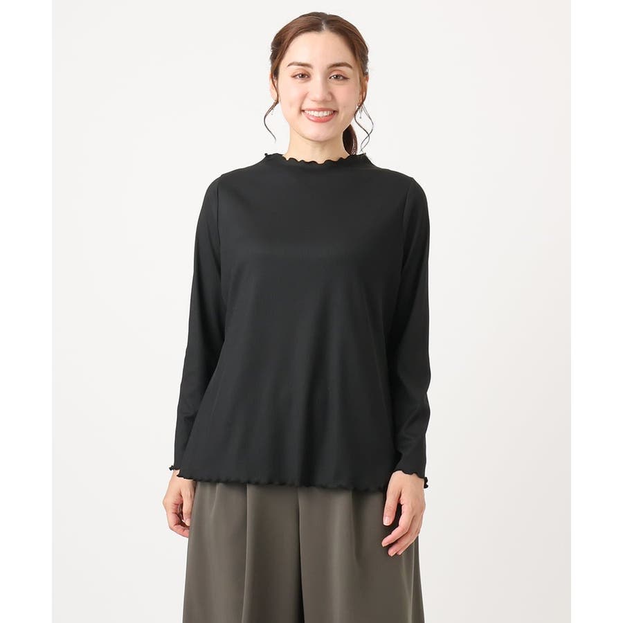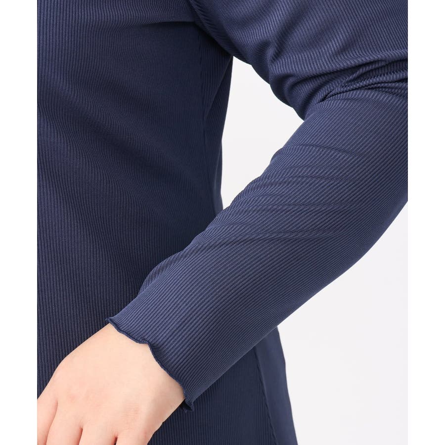 柔らかで縦みせするリブジャージーを使用したレイヤードにピッタリなベーシックトップス。