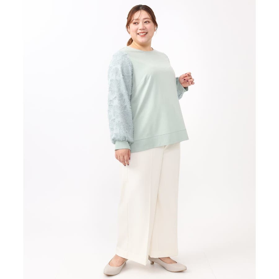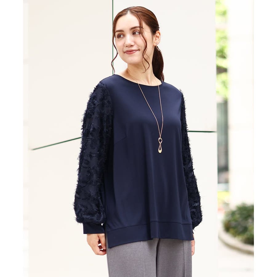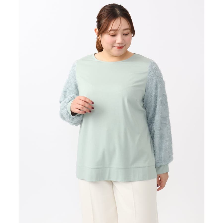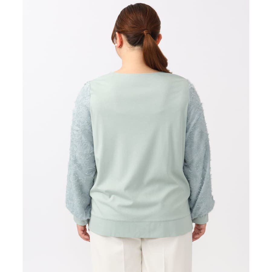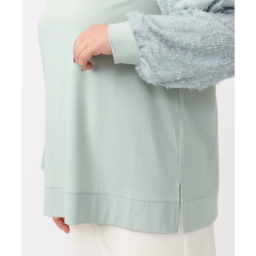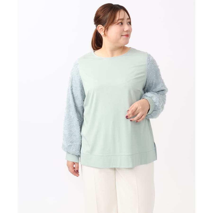 お袖に意匠感のあるカットドビーを配したコンビデザイントップス。
