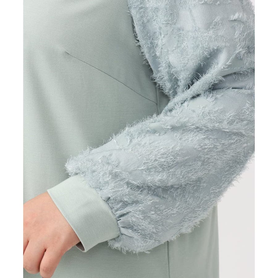 表面感のきれいなレーヨンナイロンのジャージー生地に、意匠感のあるカットドビーを袖に使用しています。