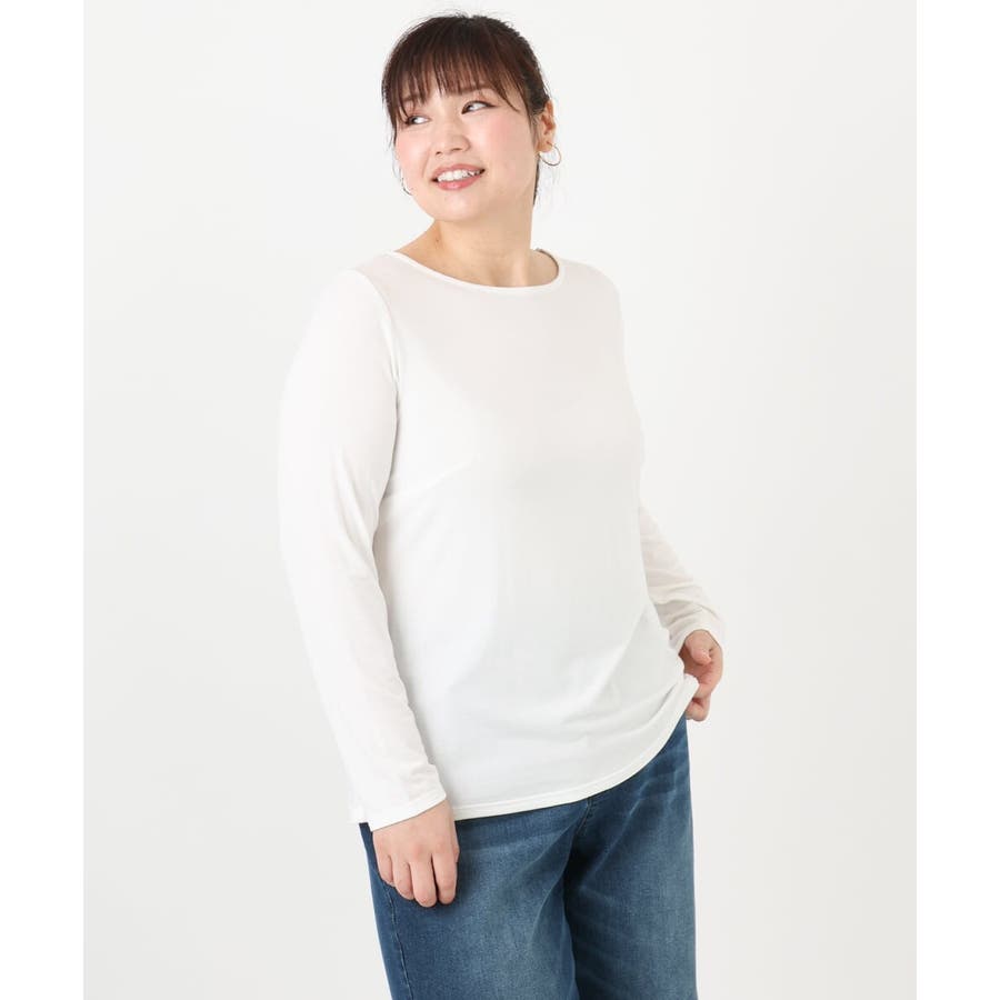 シンプルなUネック長袖プルオーバーは薄手ジャージーでレイヤードしやすく、様々なアイテムに重ねてもかさ張らない優秀トップスです。