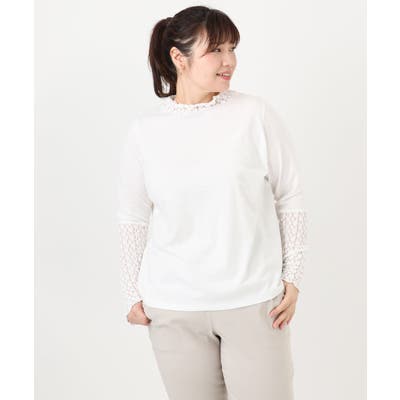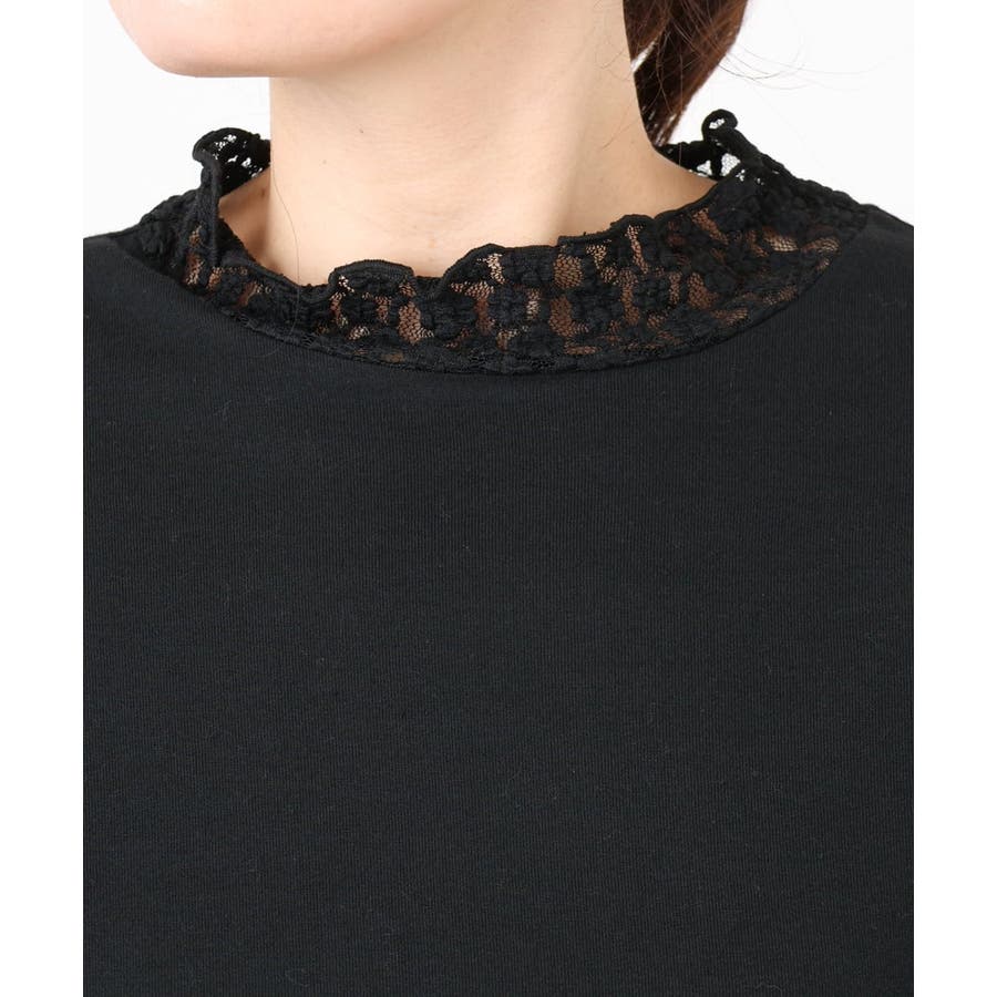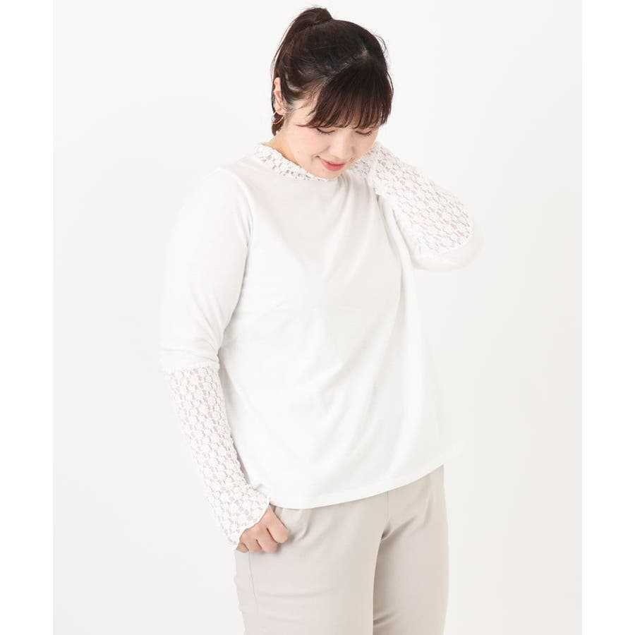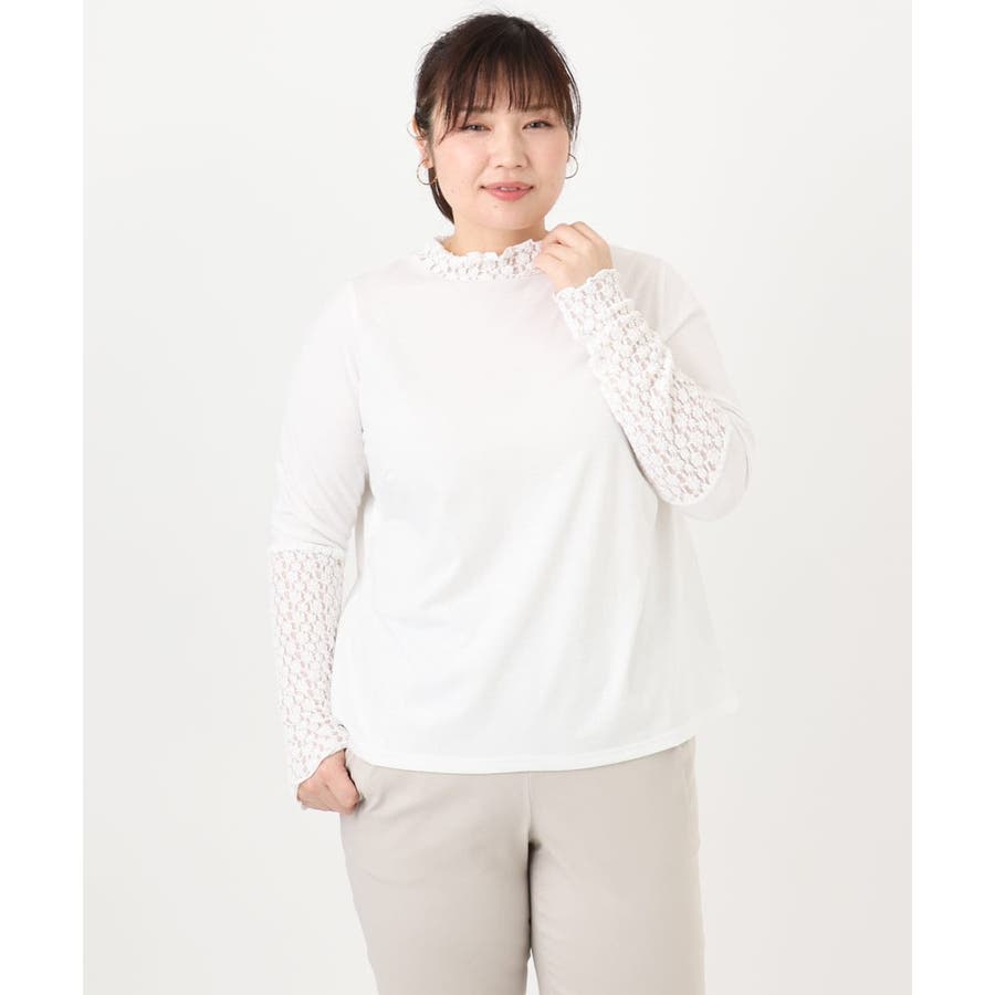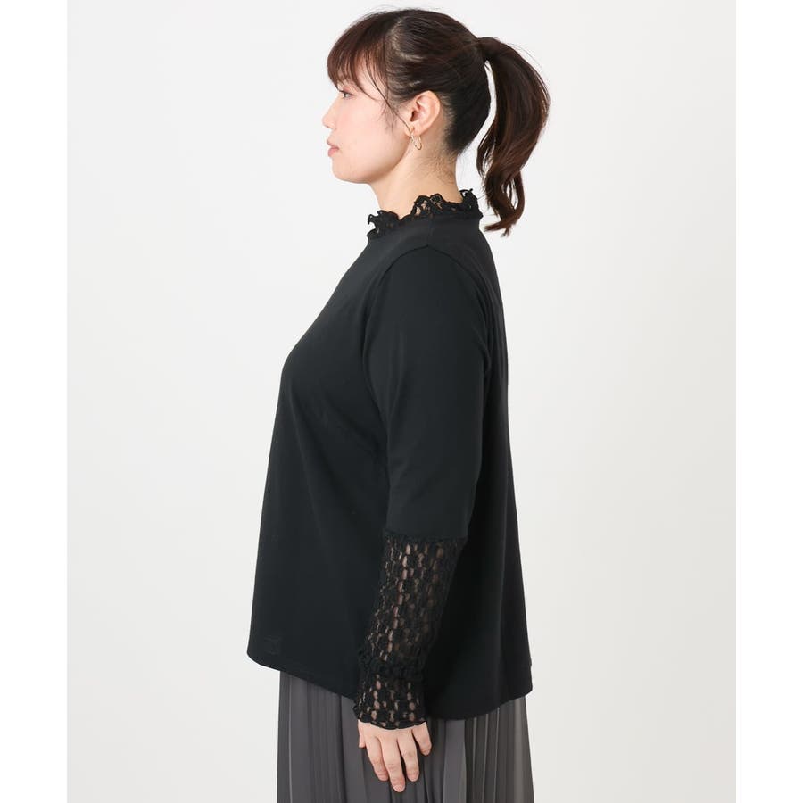 【再入荷/大きいサイズ】ハイネックレースカットソー