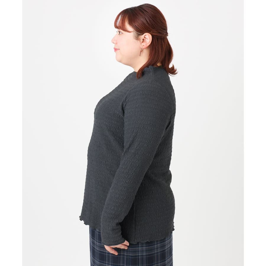 身体のラインを拾いにくい素材を使用し、1枚着としてもレイヤードアイテムとしてもご着用いただける万能トップスです。