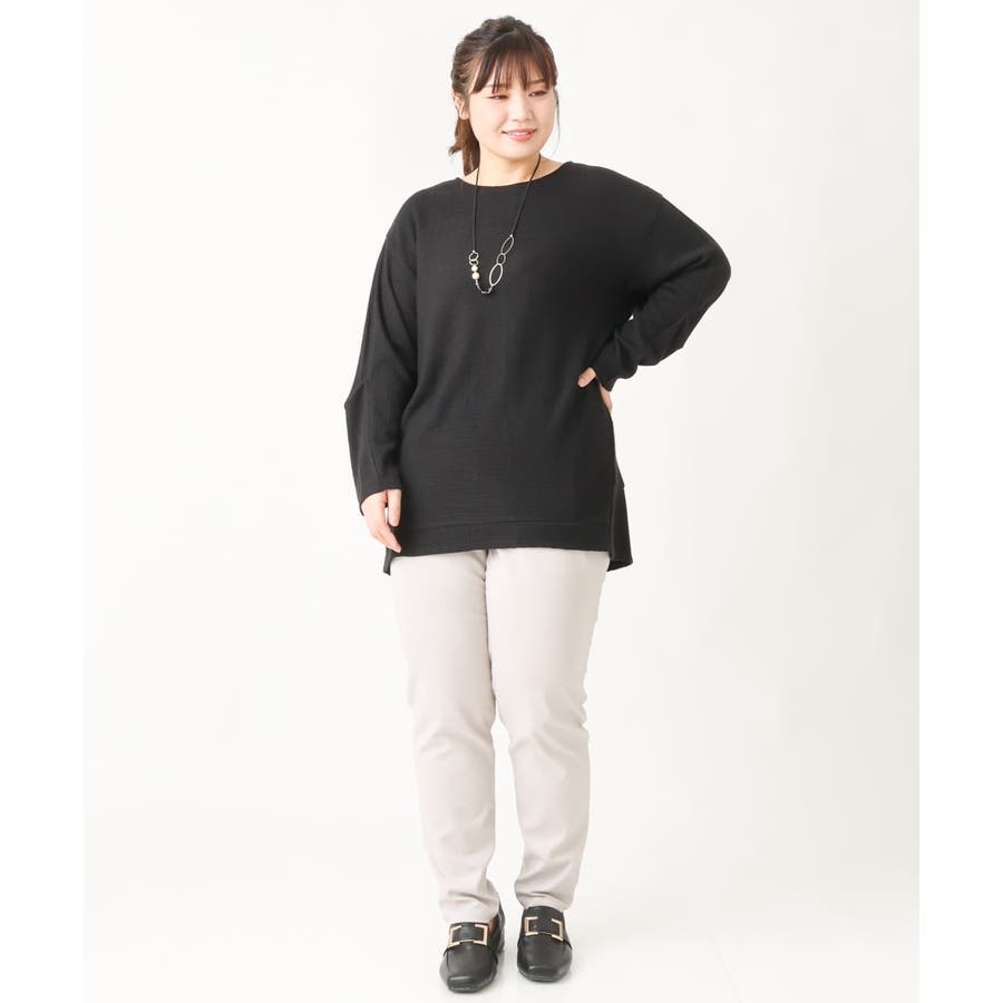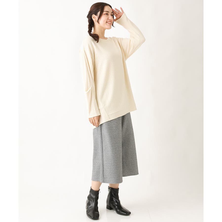 スリムパンツを合わせても股下が気にならない長めな着丈です。