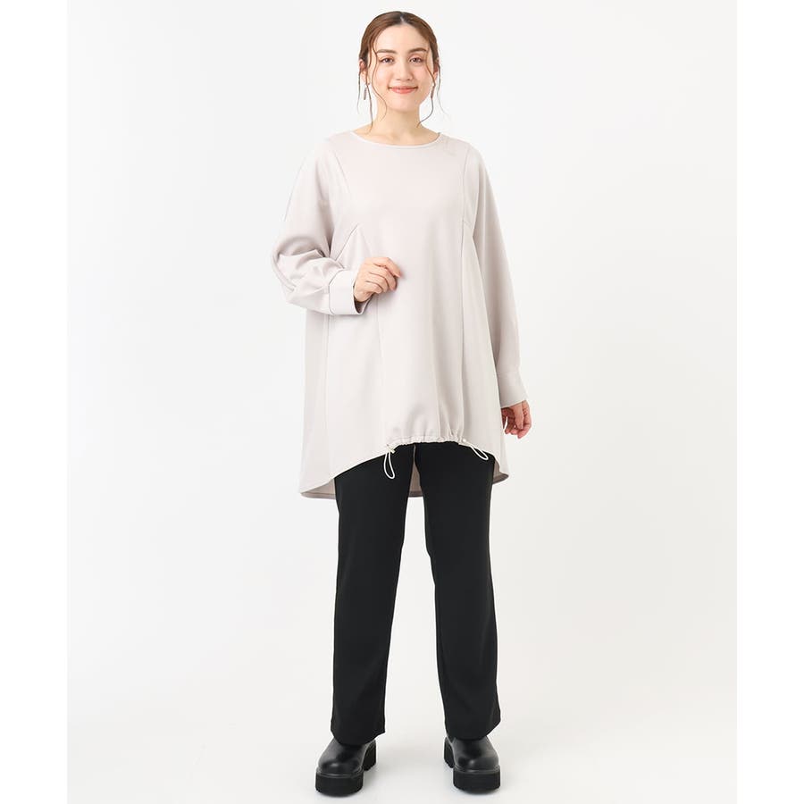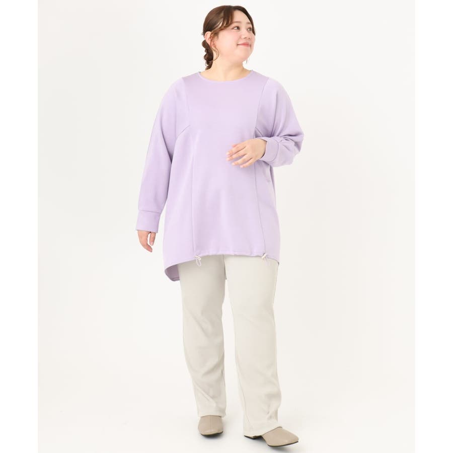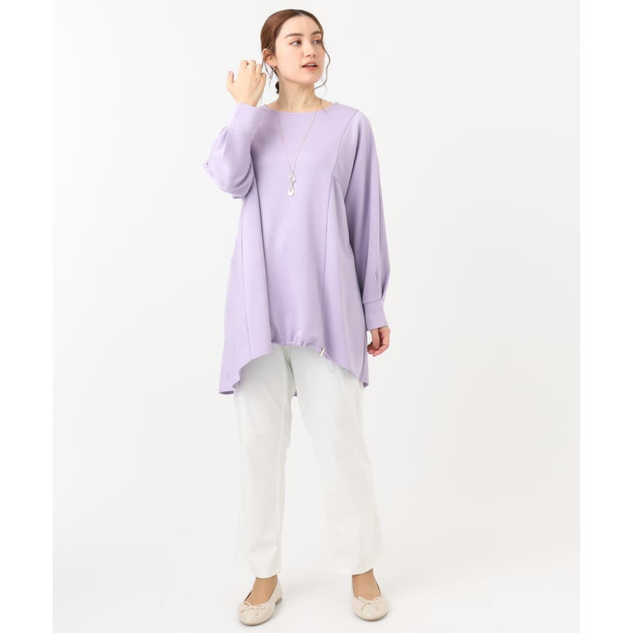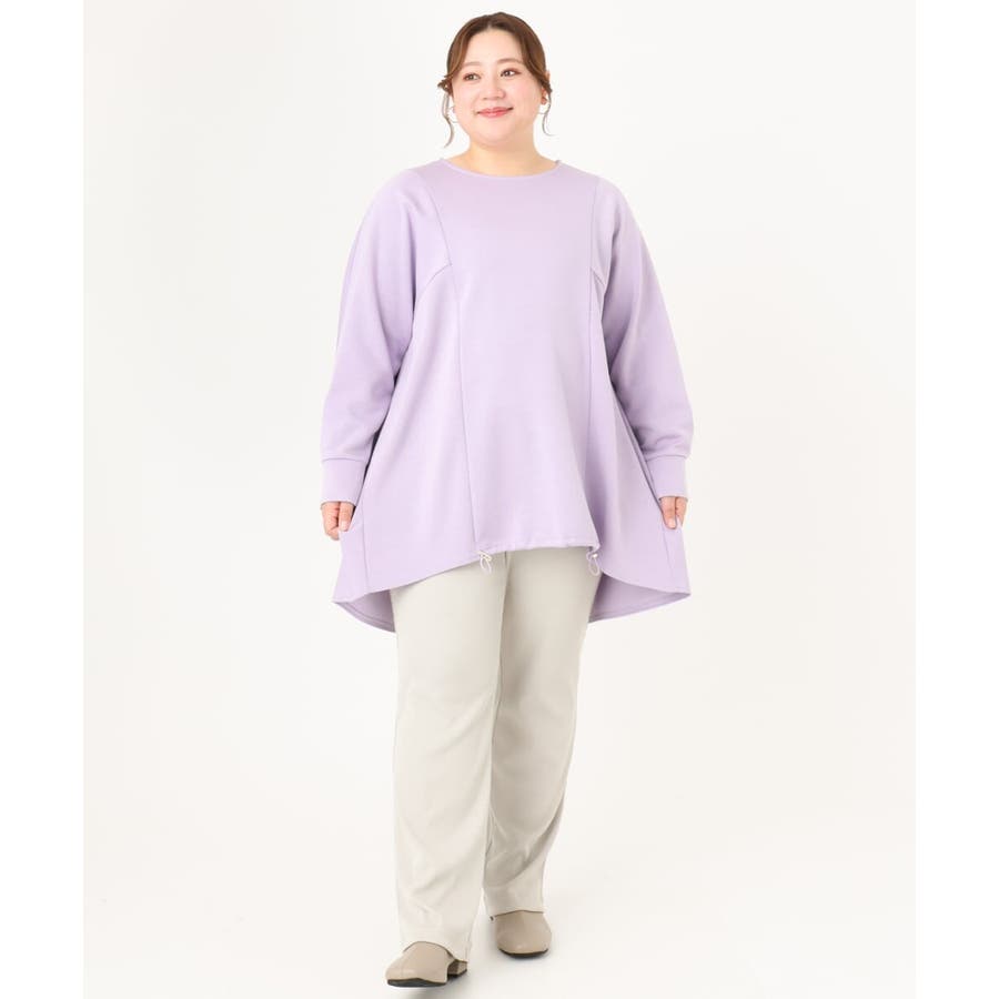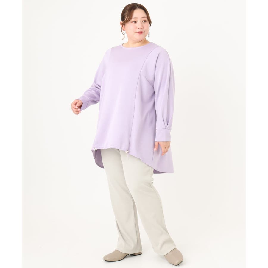 しっかり長めのトップスは後ろ着丈長めのシルエットとバックフレアでヒップ回りもしっかりカバー。