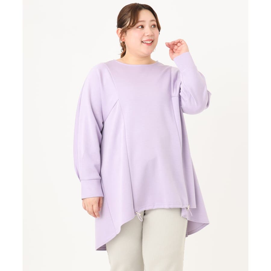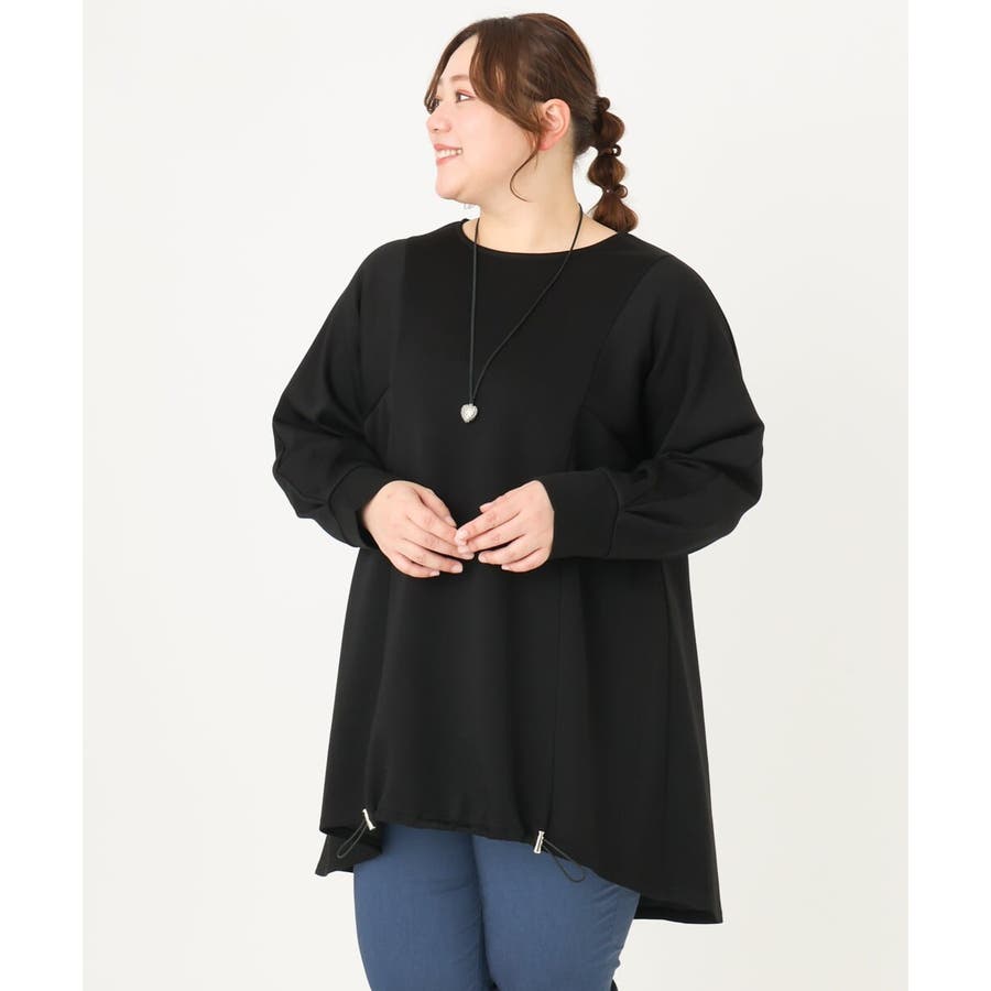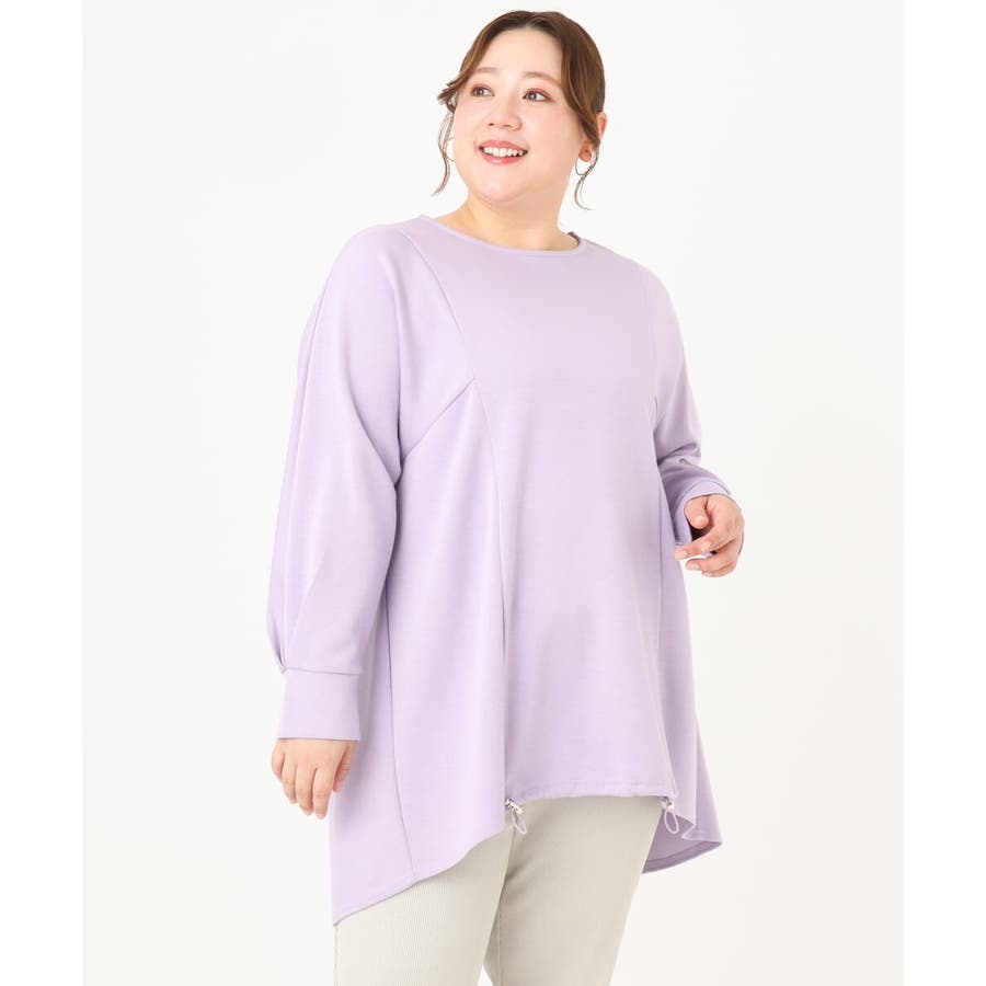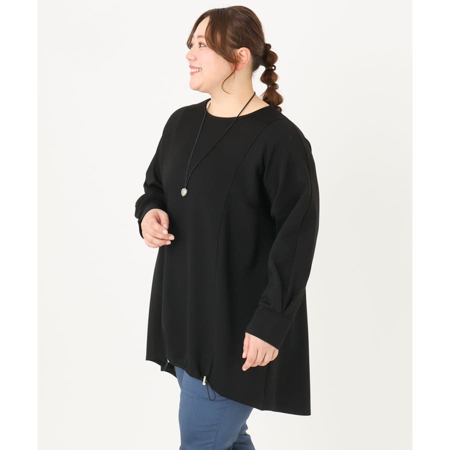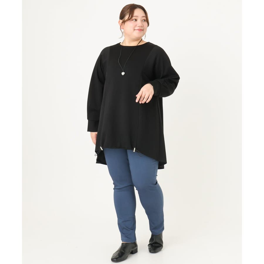 しっかり長めのトップスは後ろ着丈長めのシルエットとバックフレアでヒップ回りもしっかりカバー。