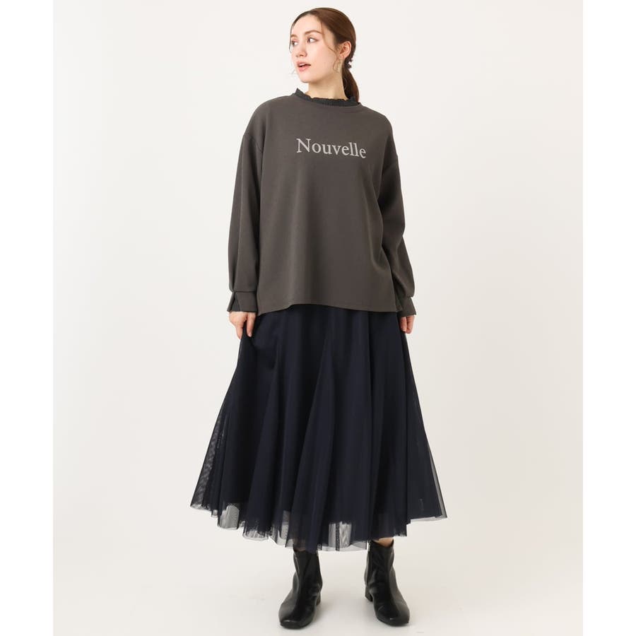 ジョーゼットならではの上品な表面感が、大人の女性にふさわしい印象を演出するプルオーバー。