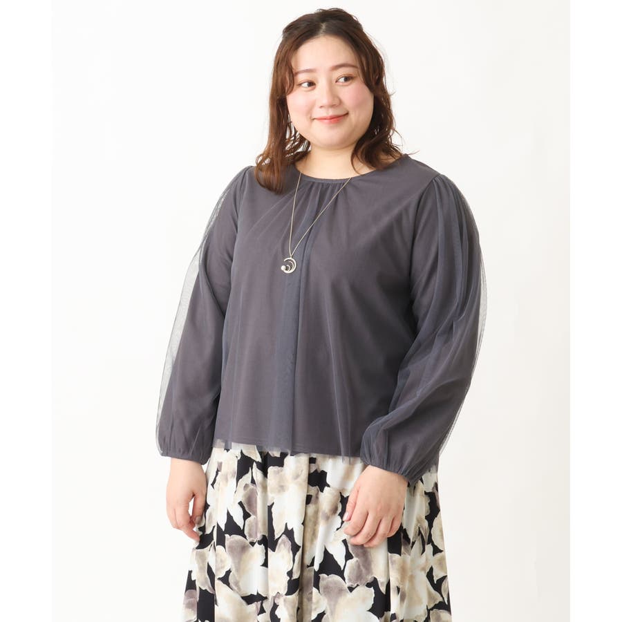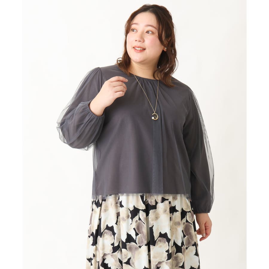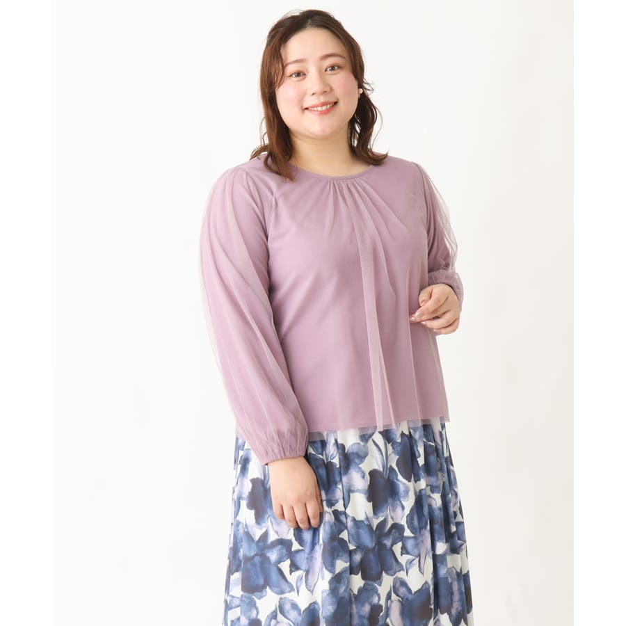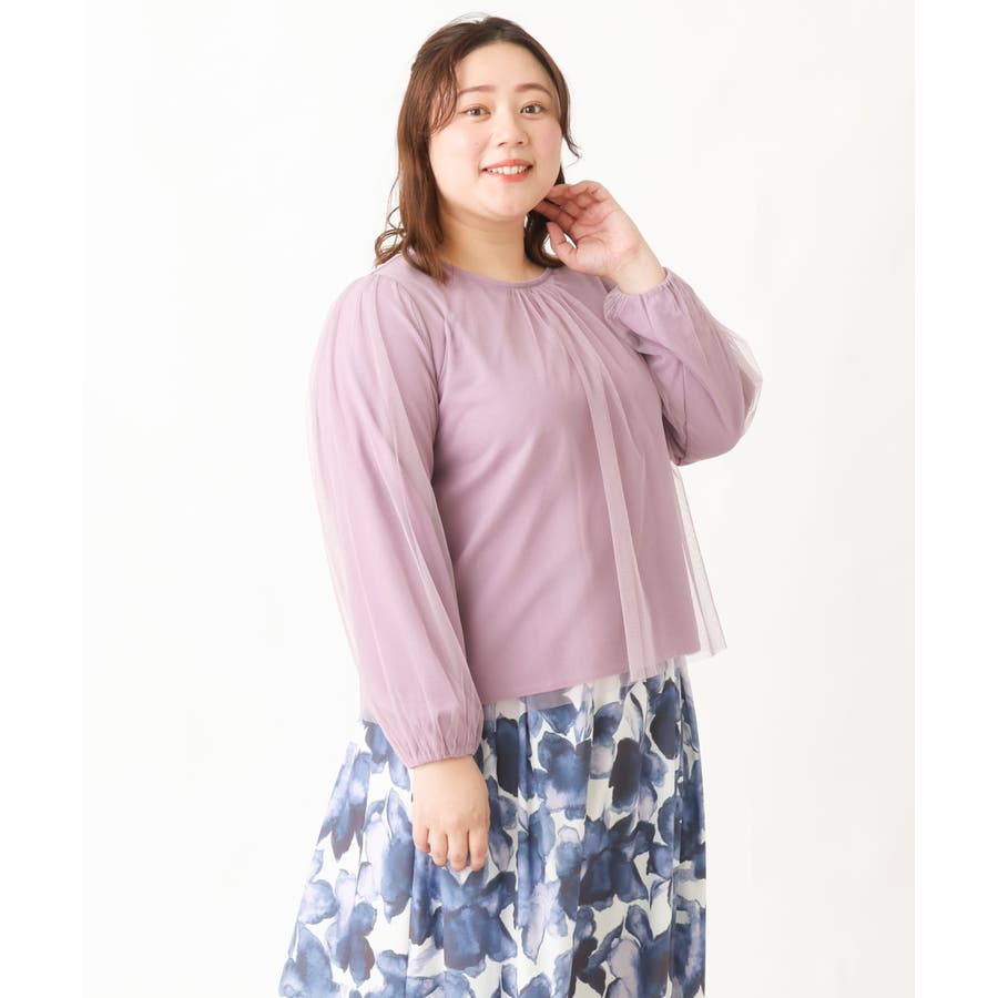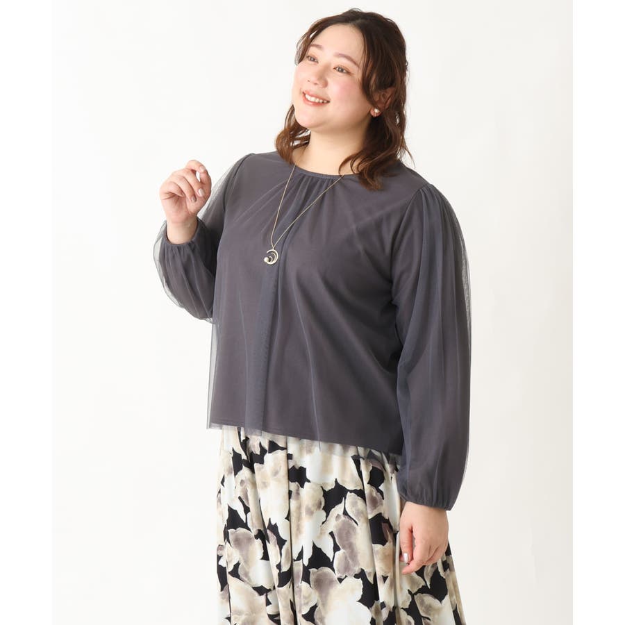 【大きいサイズ】チュールデザインカットソー