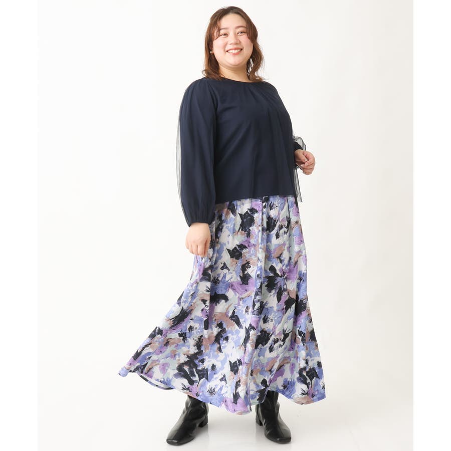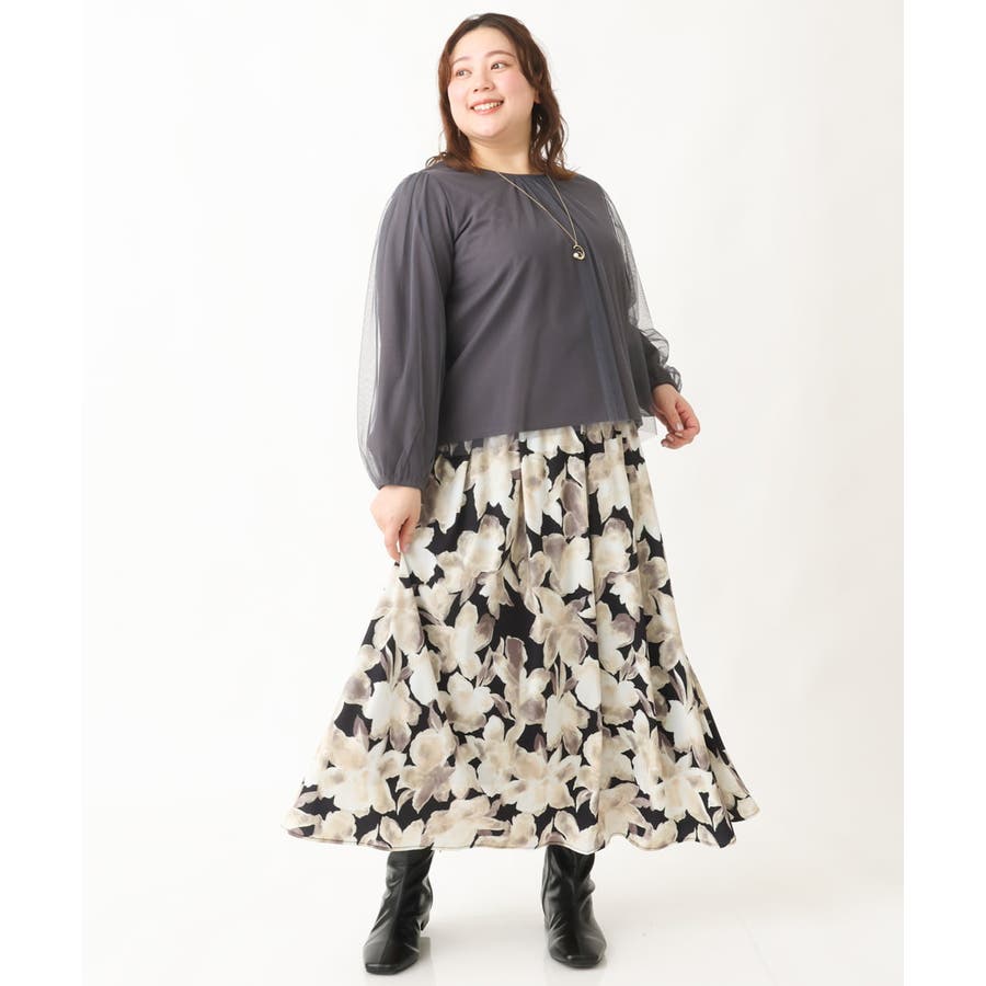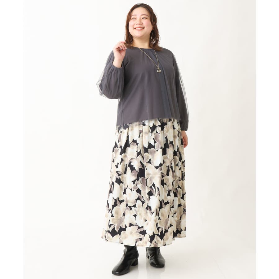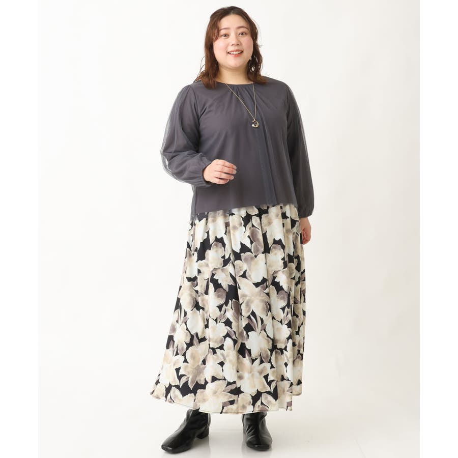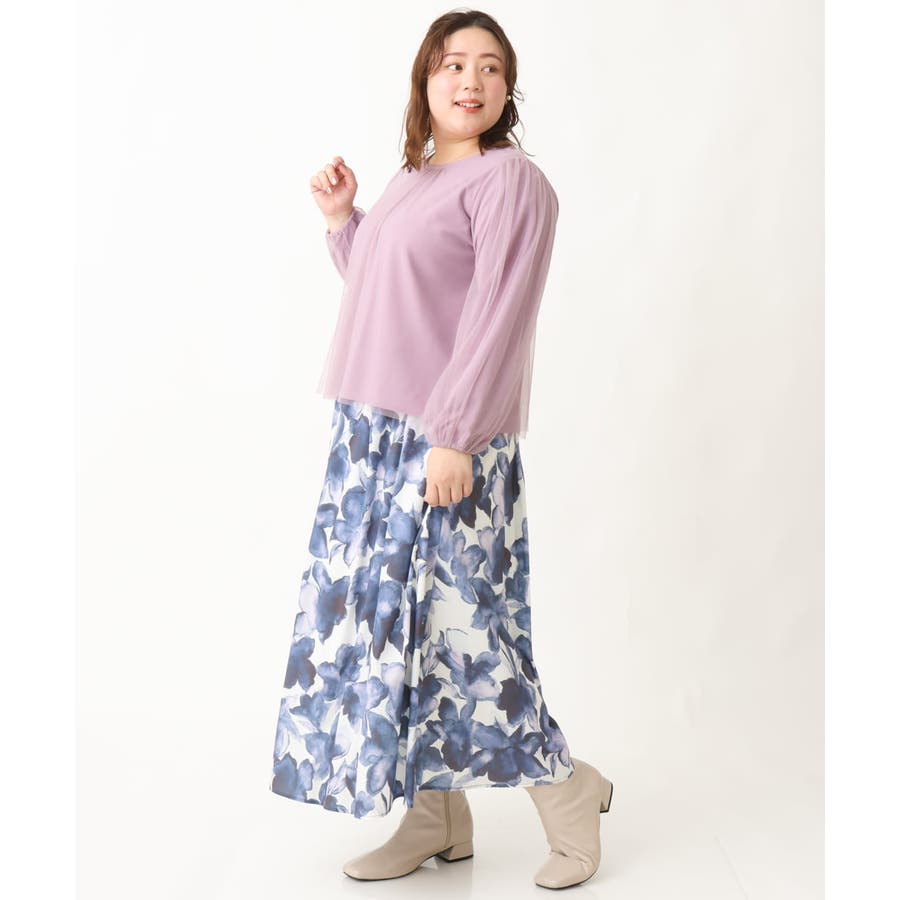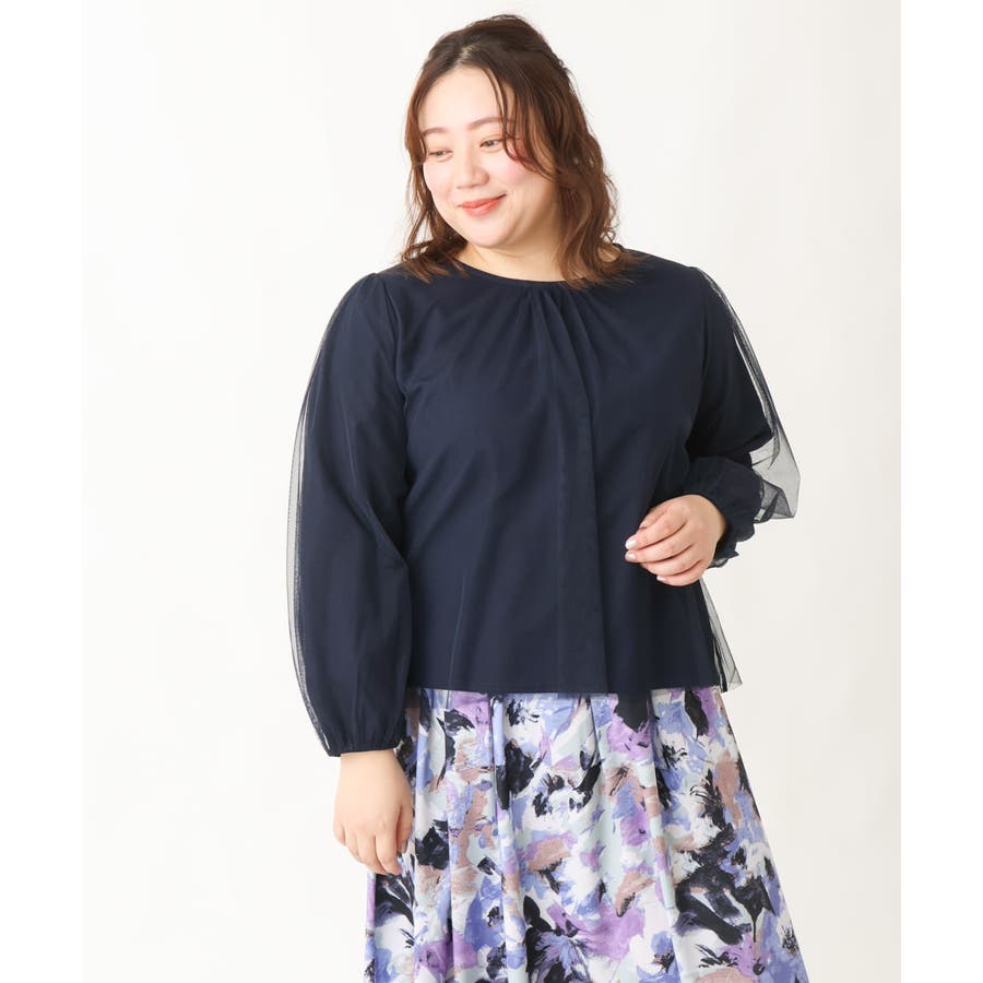 【大きいサイズ】チュールデザインカットソー