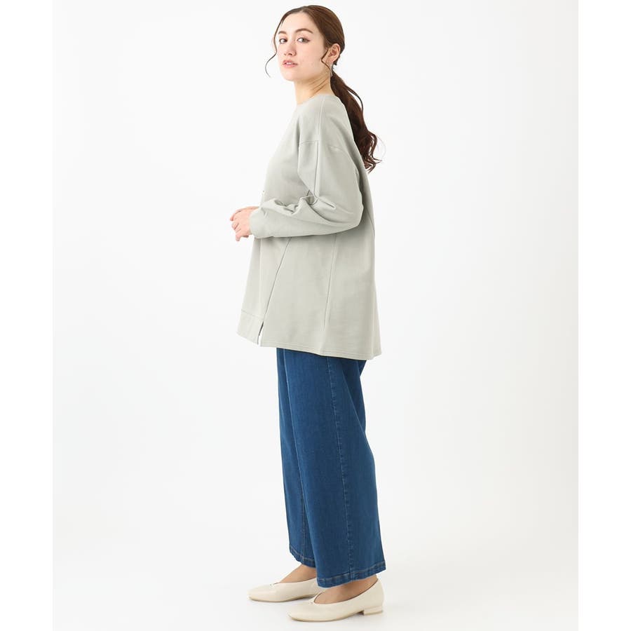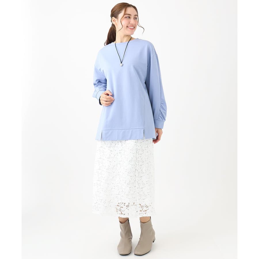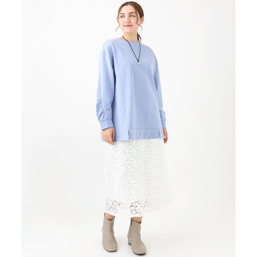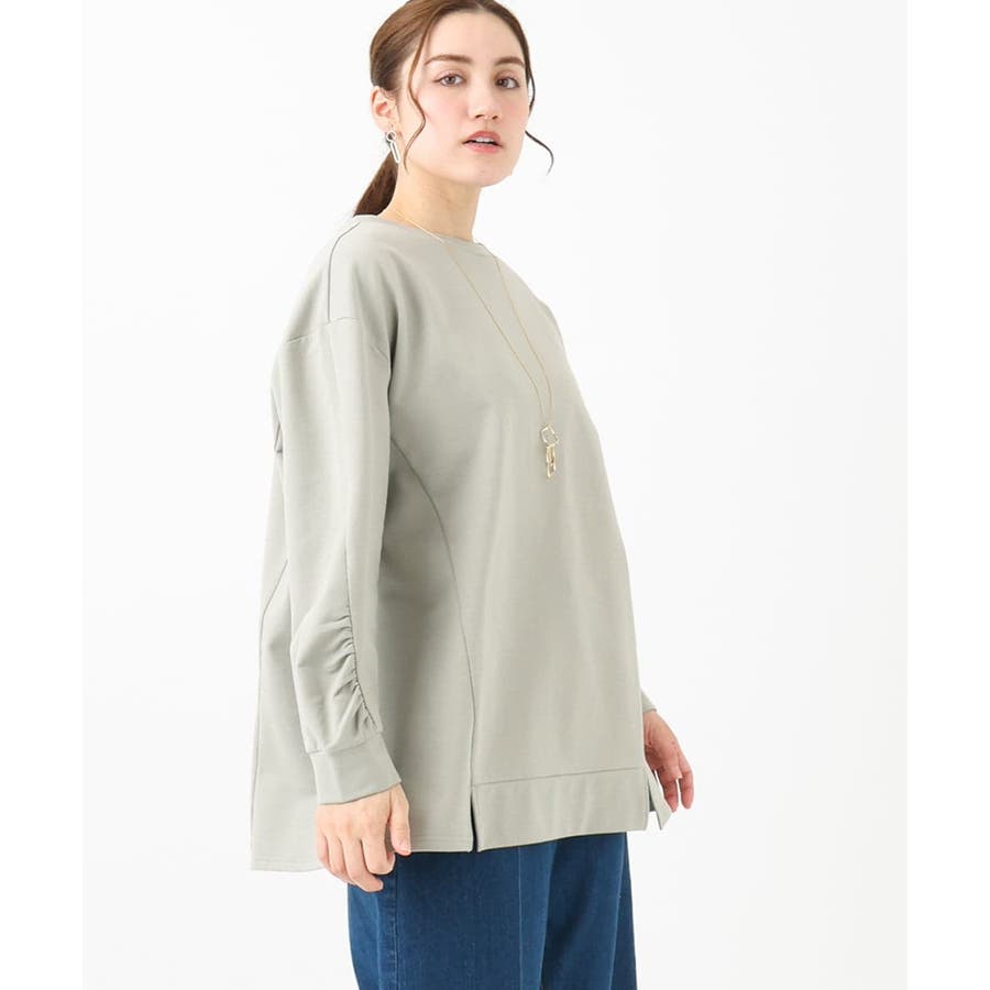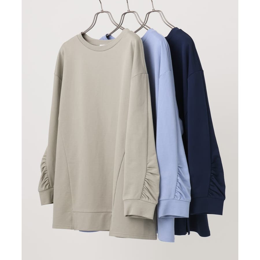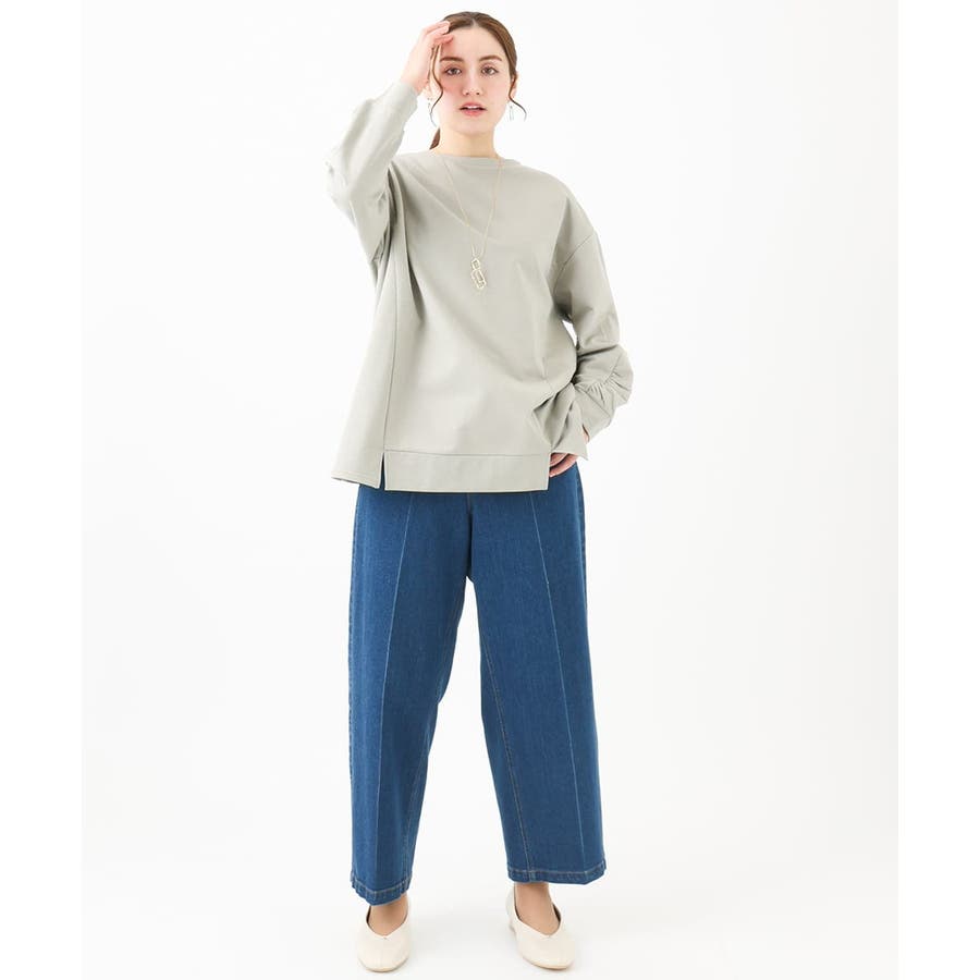 カジュアルになりがちな裏毛プルオーバーですが袖のギャザーが女性らしさをプラスします。