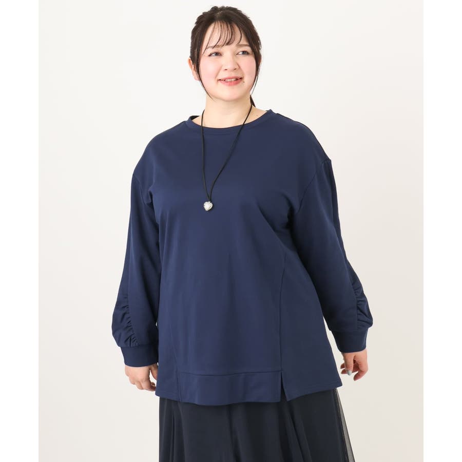 【大きいサイズ】袖ギャザーウラケプルオーバー