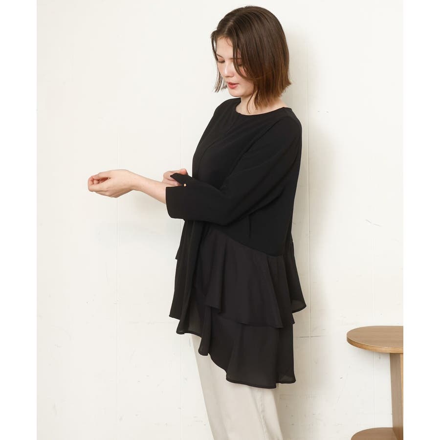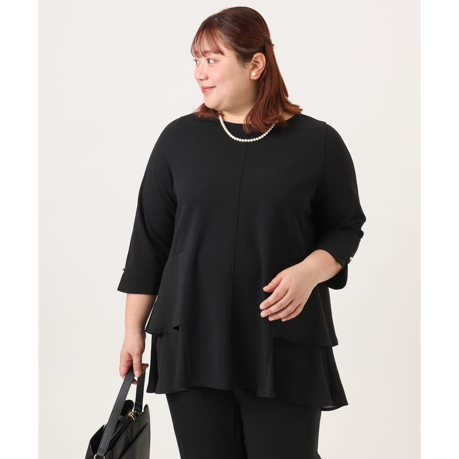 【大きいサイズ/セットアップ対応】カットジョーゼットバックティアードカットソー