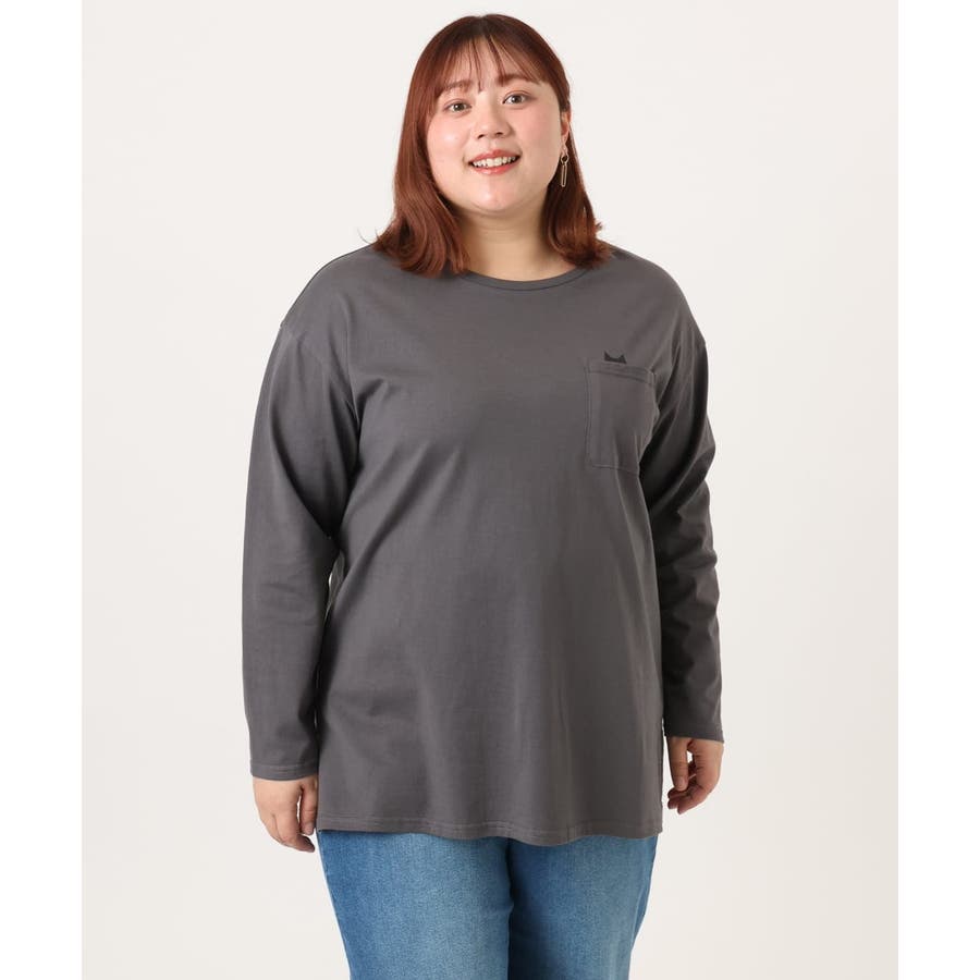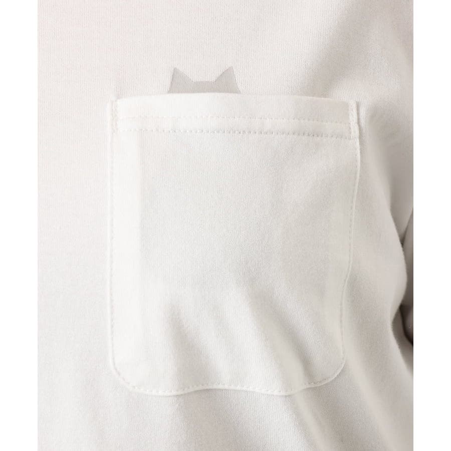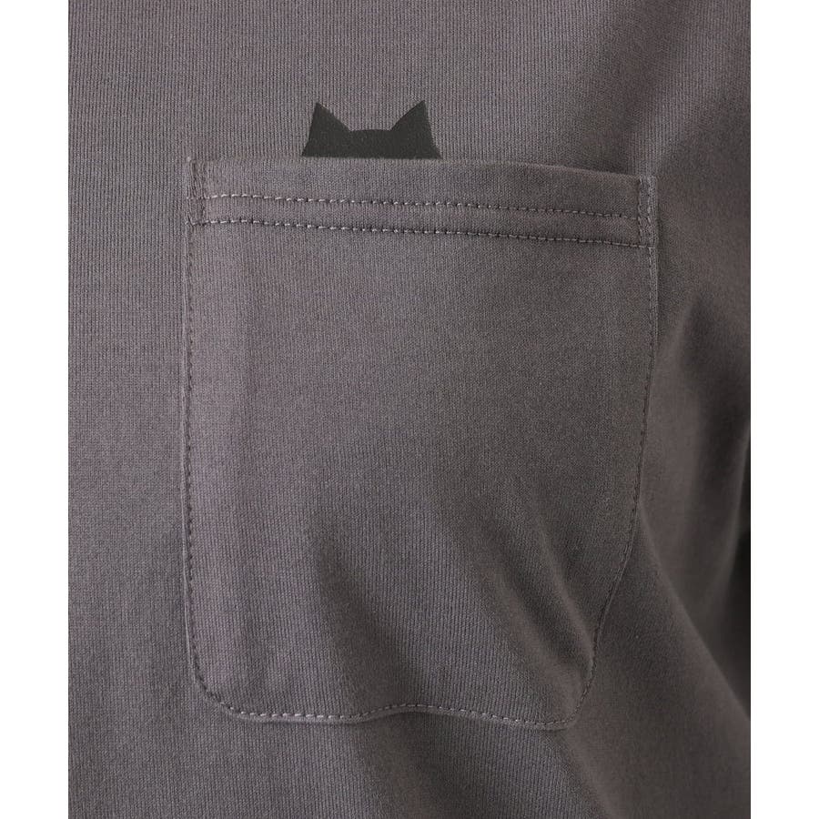 ポケットからちょこんと顔を出す猫のシルエットが愛らしい、ねこプリントの長袖Tシャツ。
