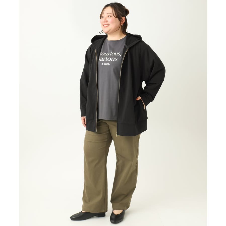 腰回りをさりげなくカバーできる着丈もポイントです。