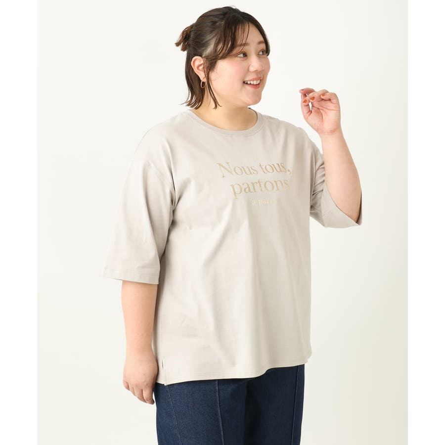 【大きいサイズ】ドロップショルダーロゴTシャツ