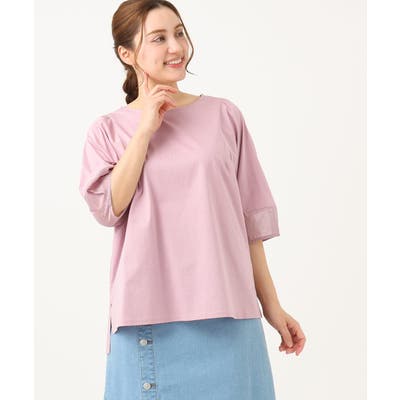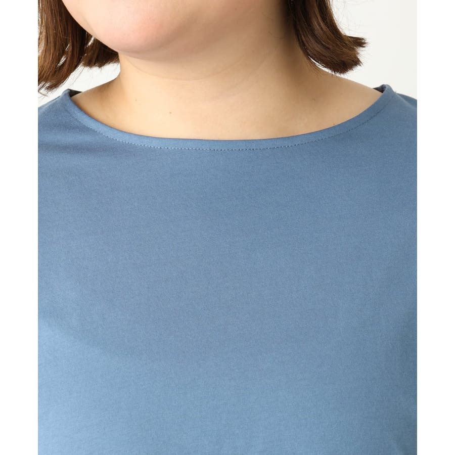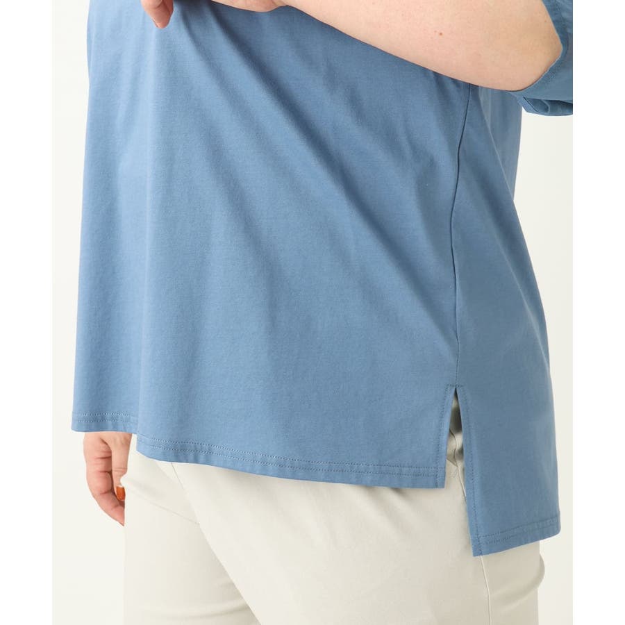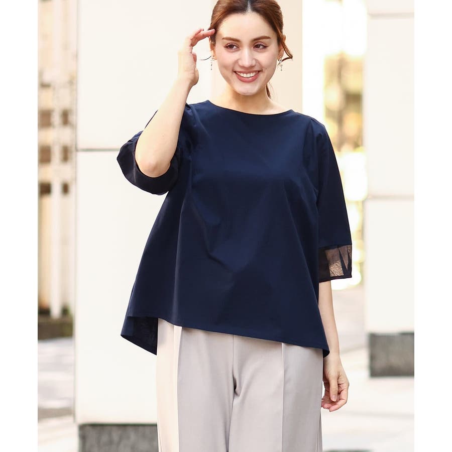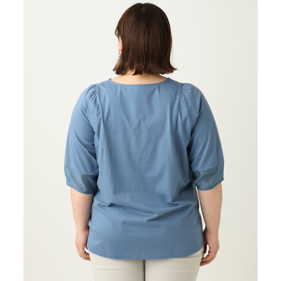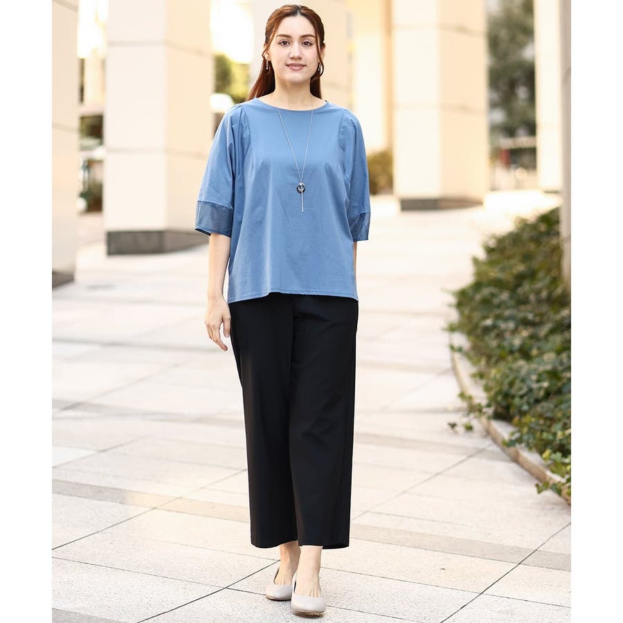肌触りサラッとしたきれい見えするコットン100%の天竺編みジャージ素材に、シアーな合繊布帛生地を使用しています。
