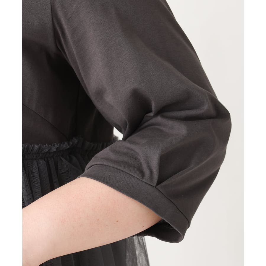 コットン100%の天竺ジャージーに、柔らかな落ち感のある合繊チュールを使用。