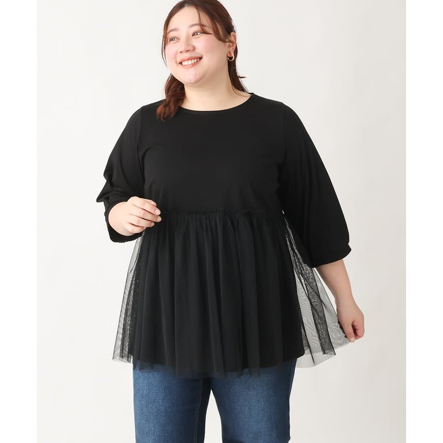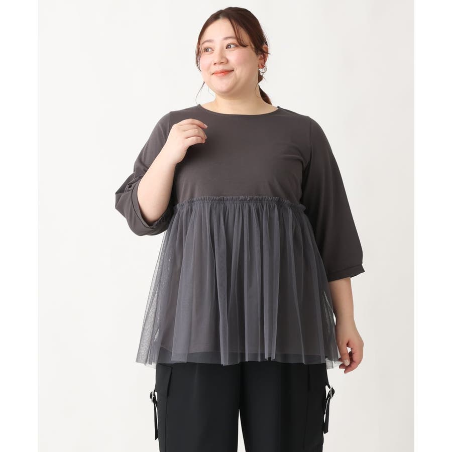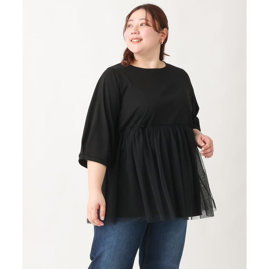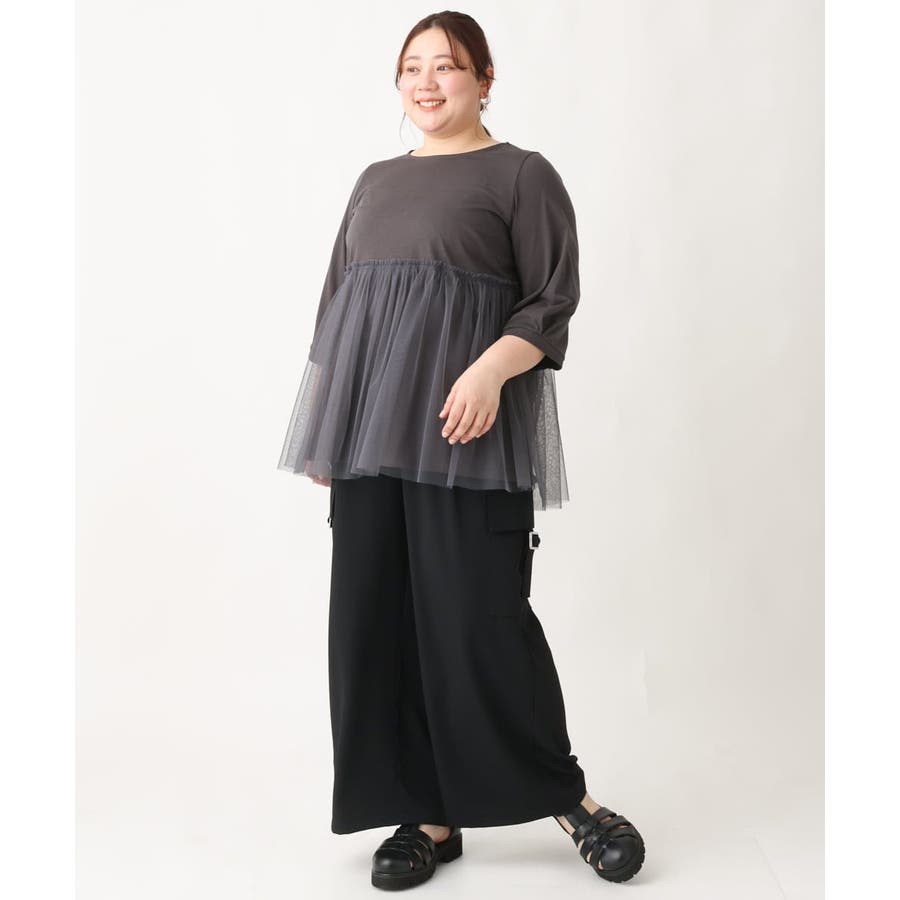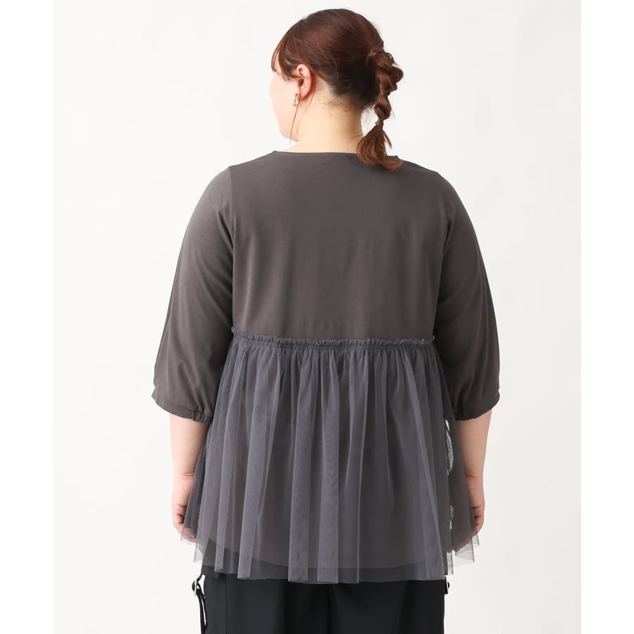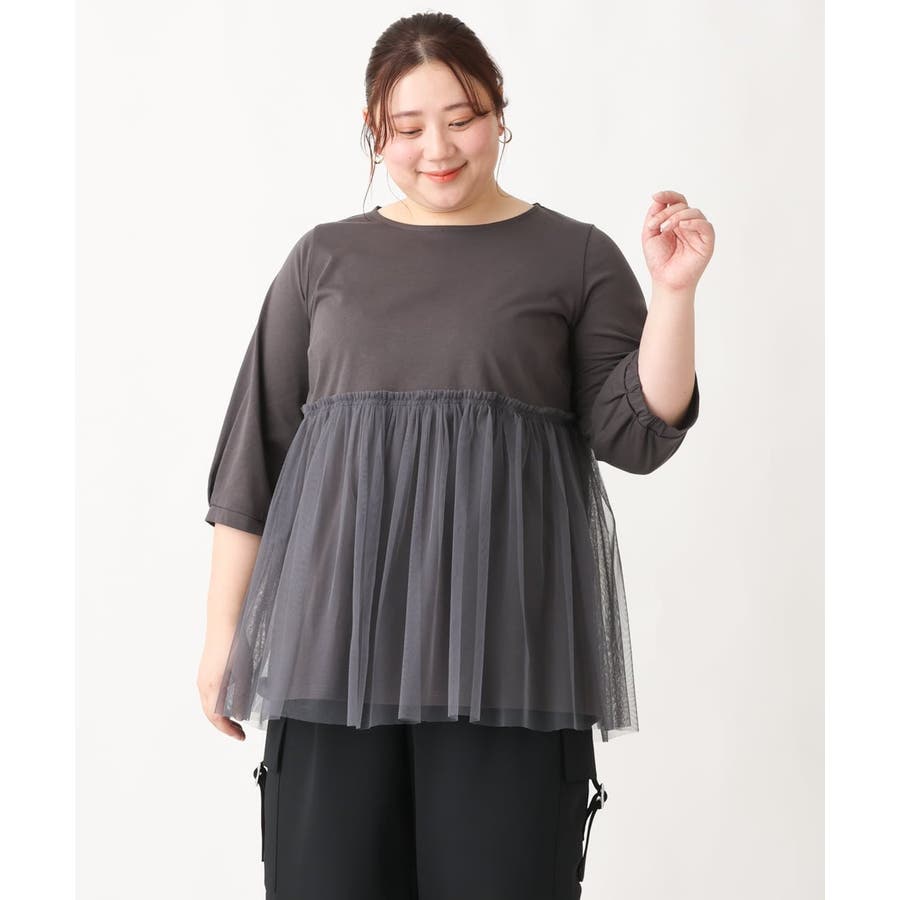 【大きいサイズ】チュールギャザーコンビチュニック
