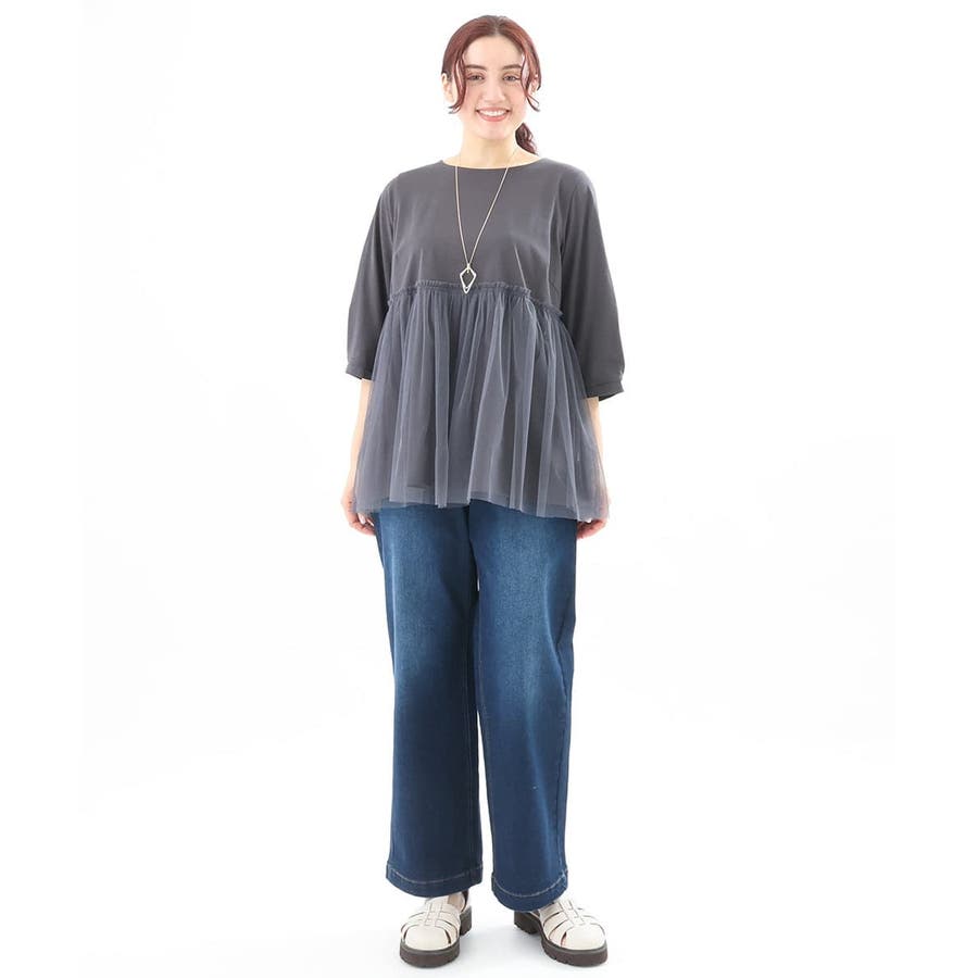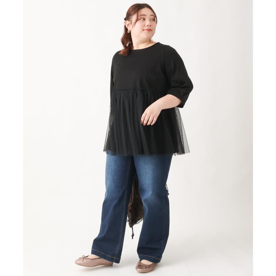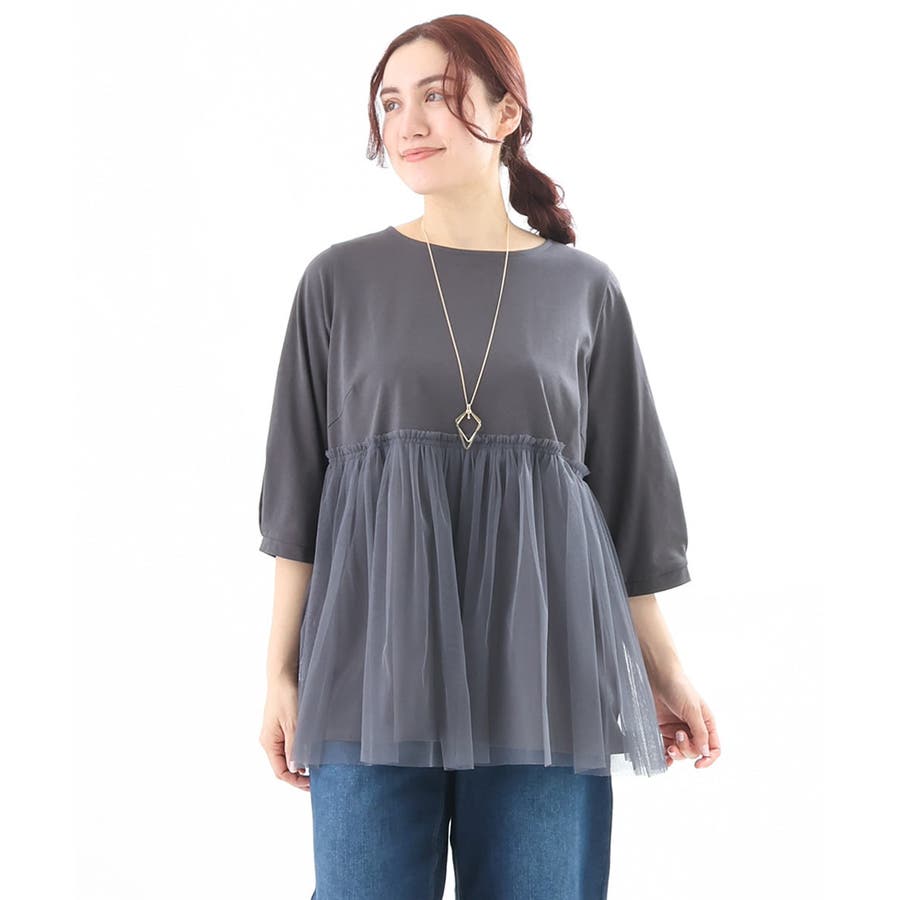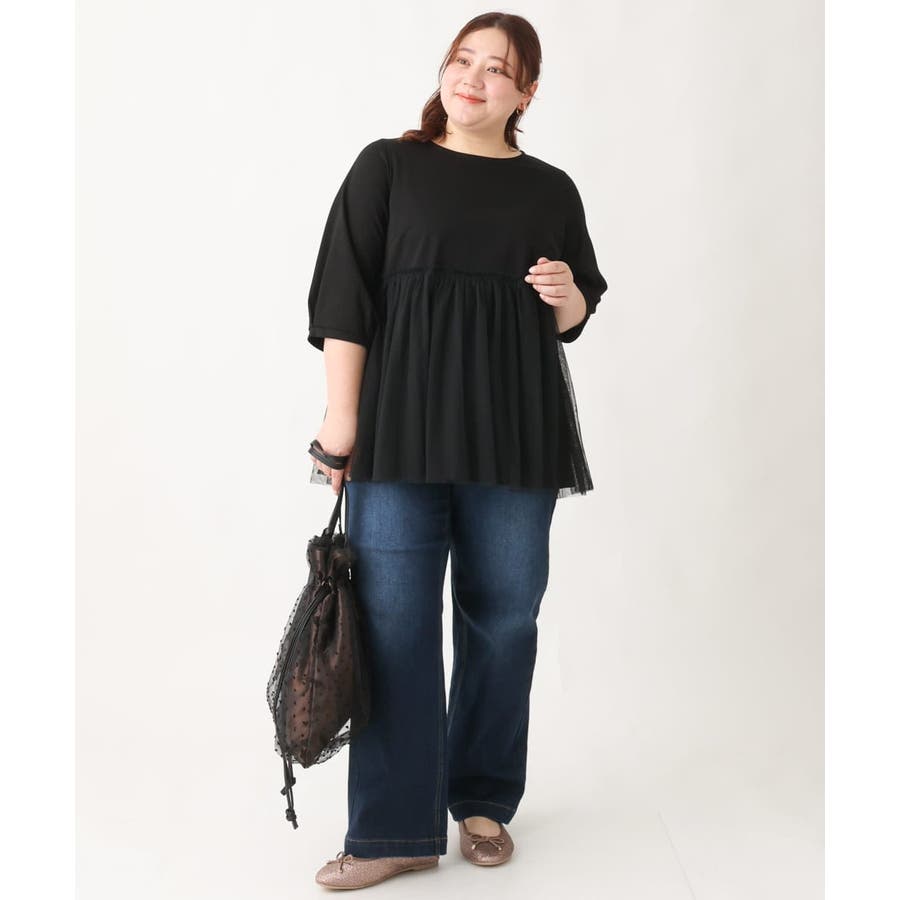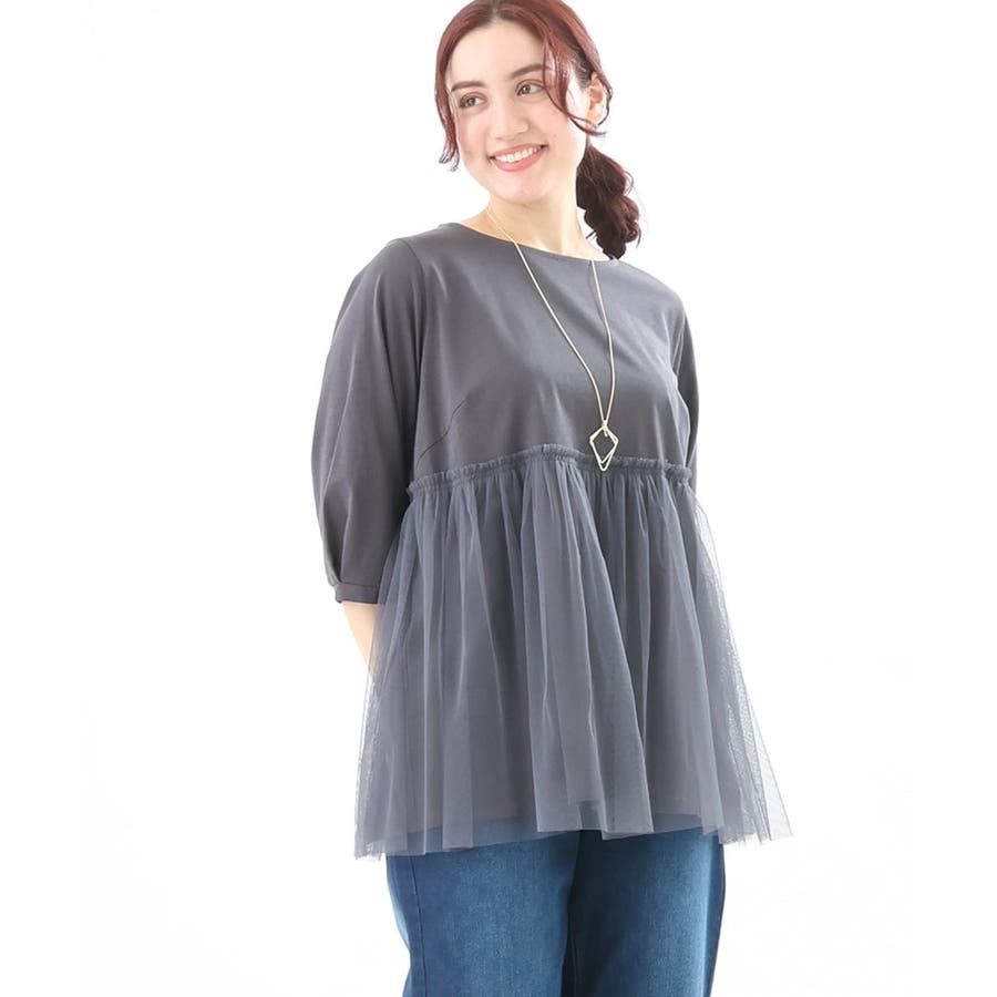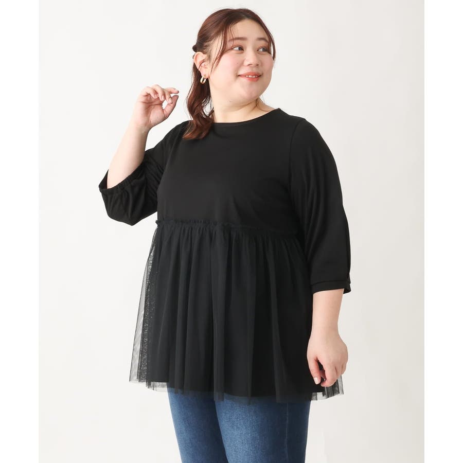 【大きいサイズ】チュールギャザーコンビチュニック