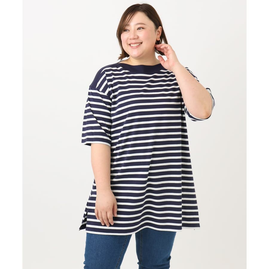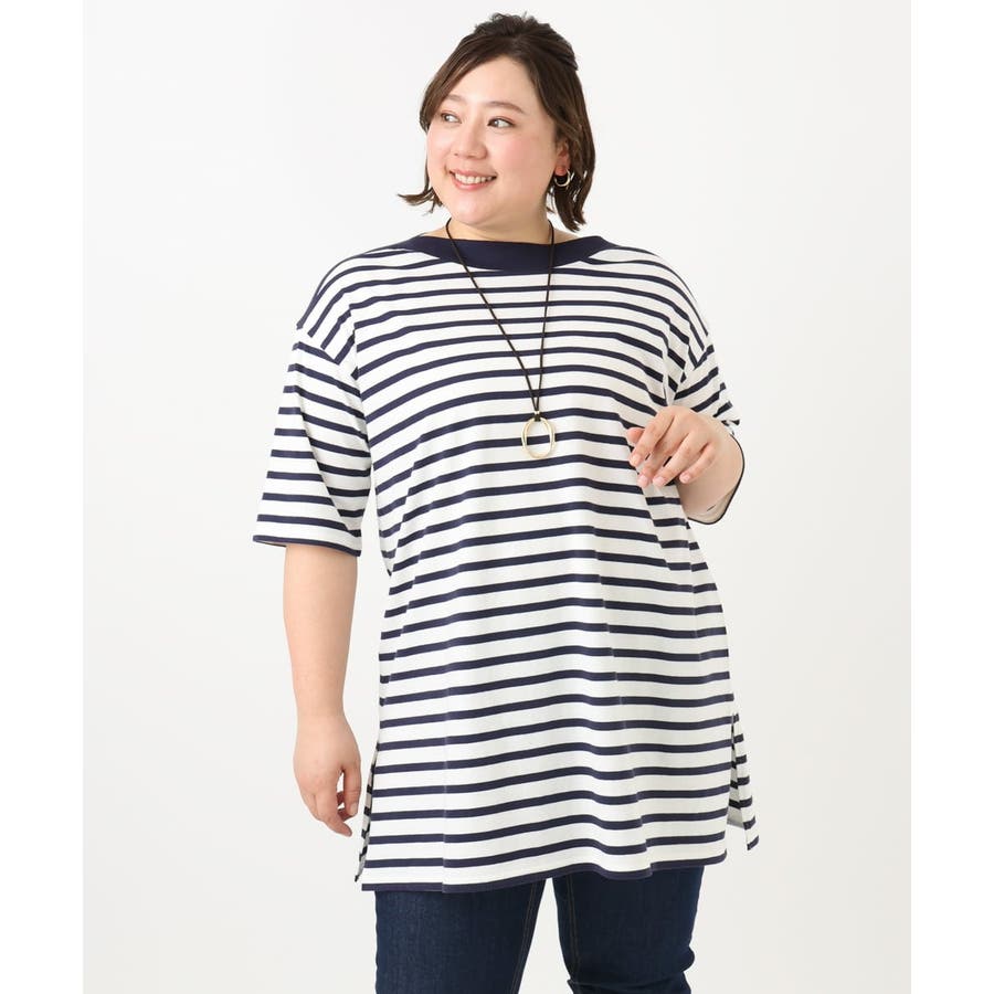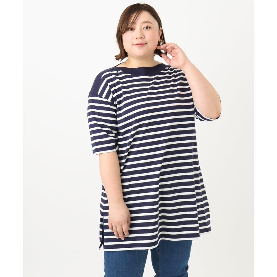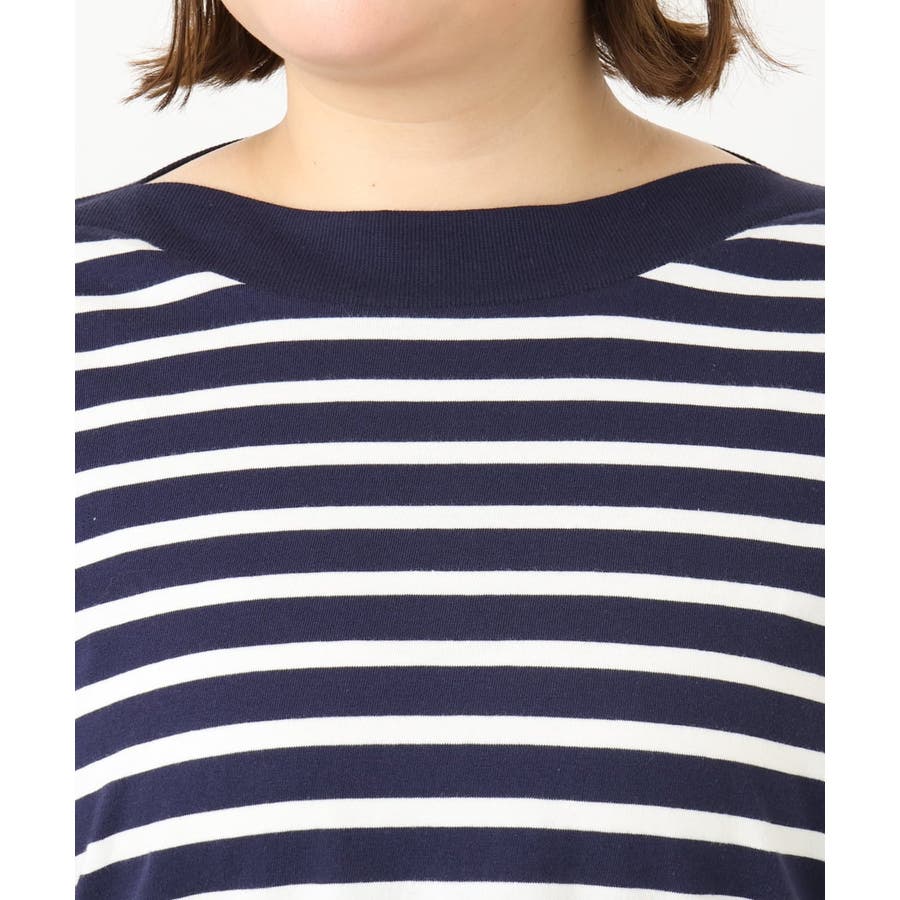 【大きいサイズ】ボートネックボーダーカットソー