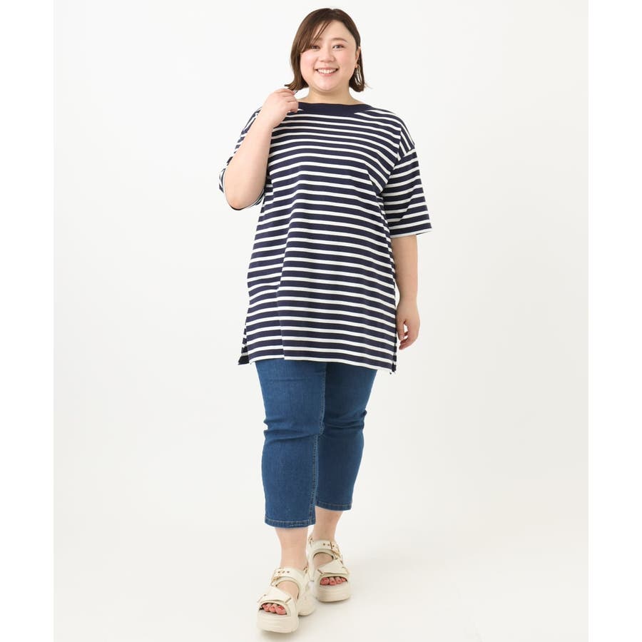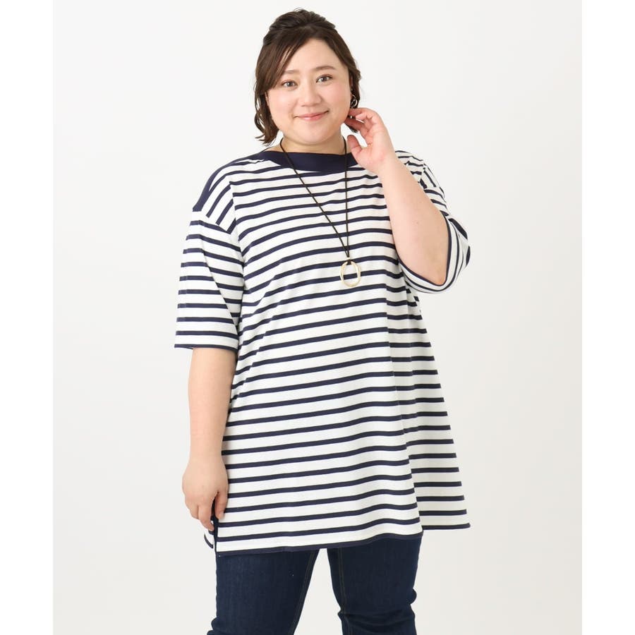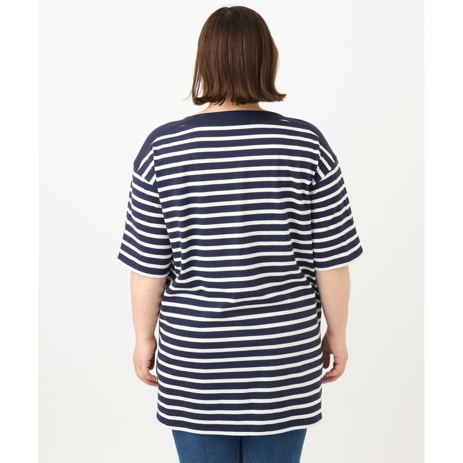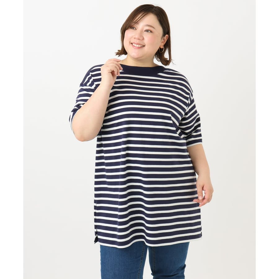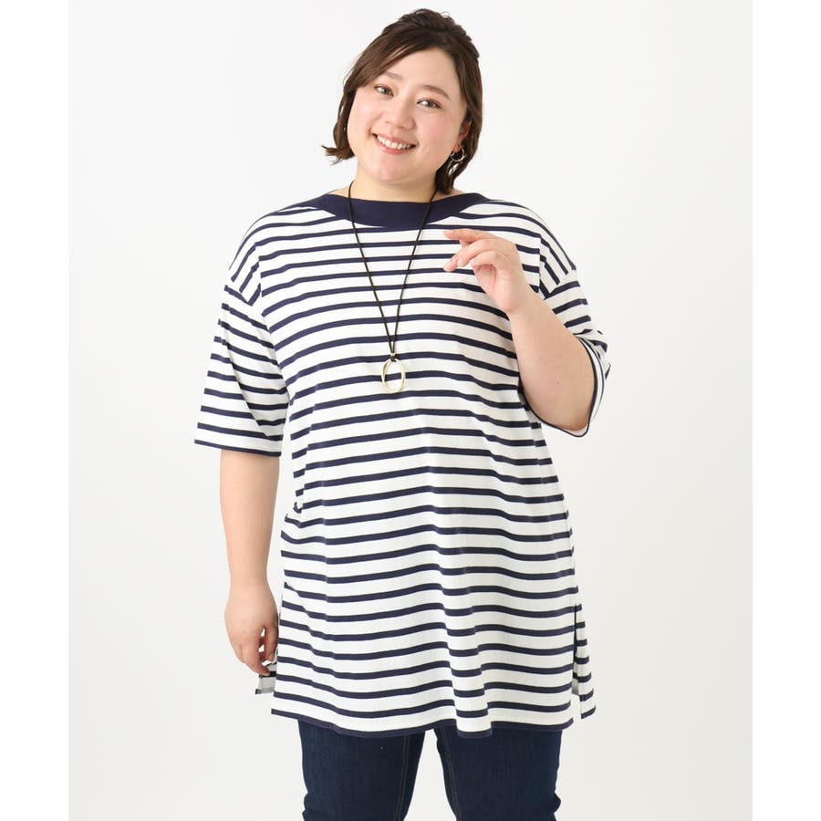 【大きいサイズ】ボートネックボーダーカットソー