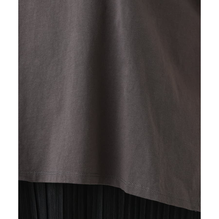 ゆったりしたボクシーなシルエットで裾がイレヘムになったTシャツとプリーツタンクトップのセット。