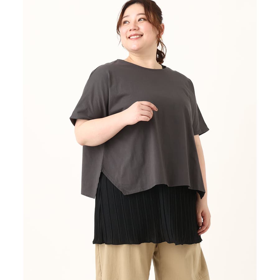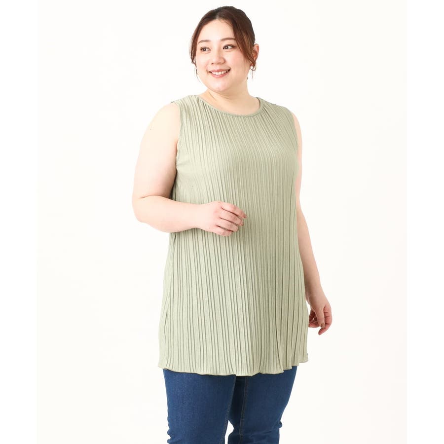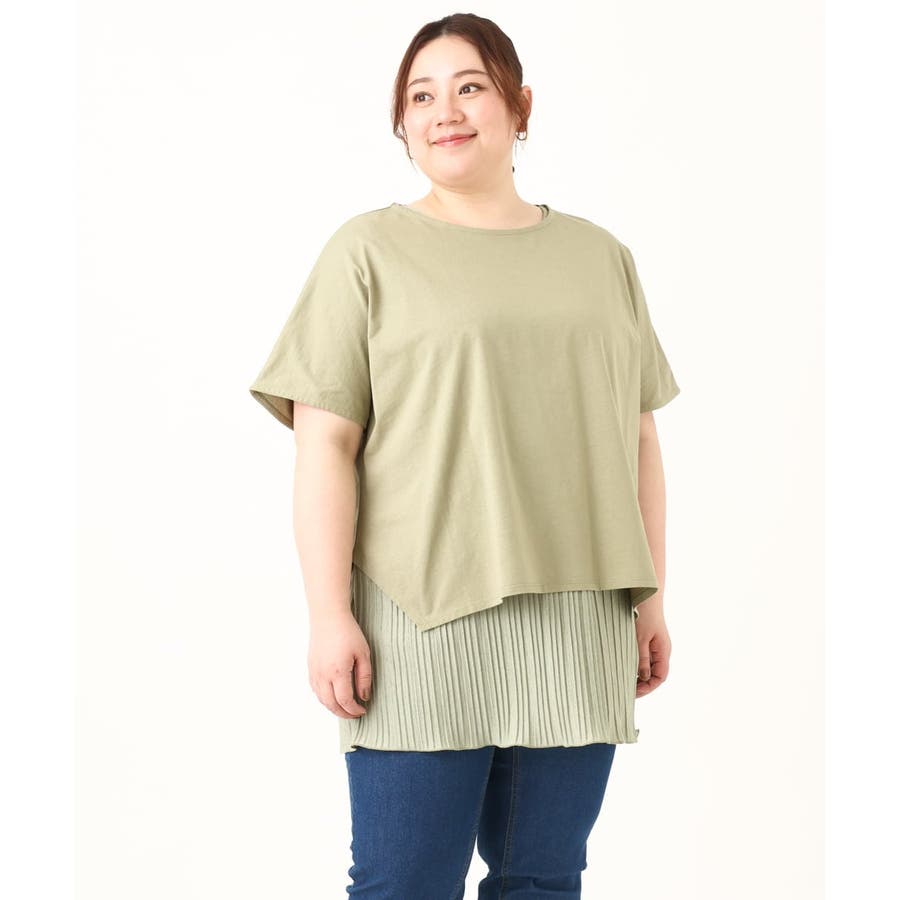 【大きいサイズ/soso×eur3】Tシャツ×プリーツタンクトップセット