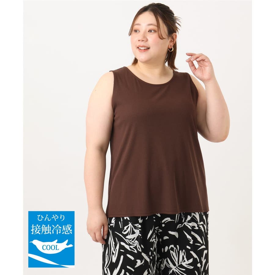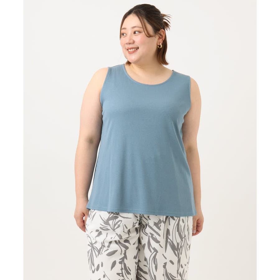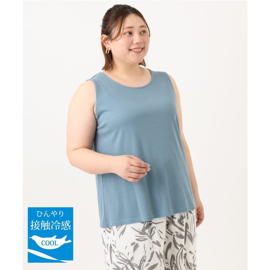 【大きいサイズ/接触冷感】ラウンドネックテレコタンクトップ