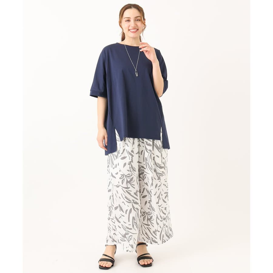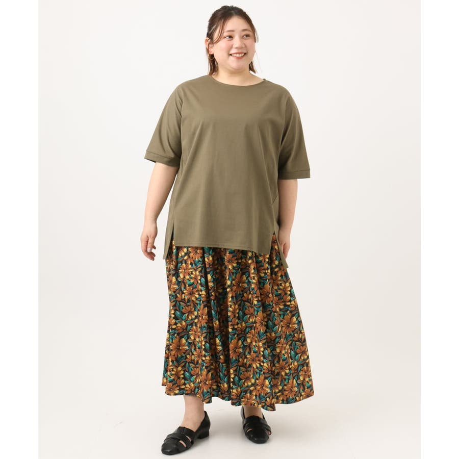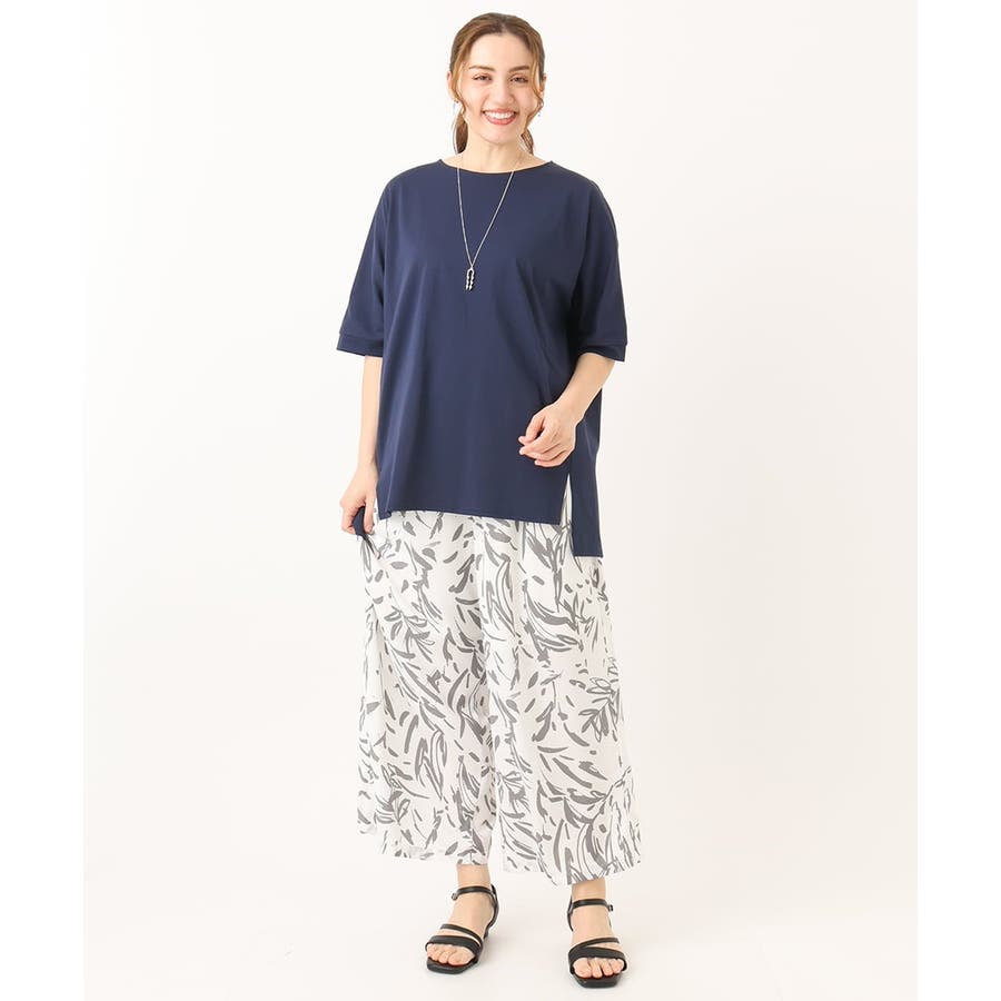 無地なのでプリントのスカートやワイドパンツを合わせたスタイリングもおすすめ。