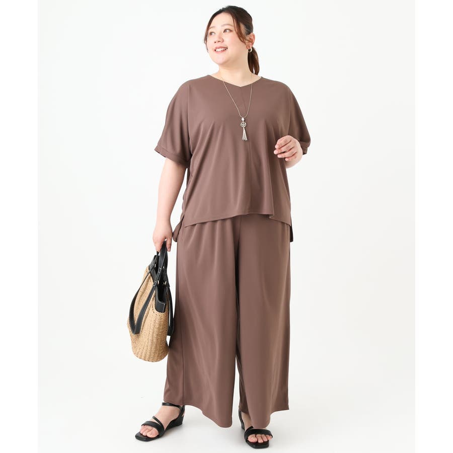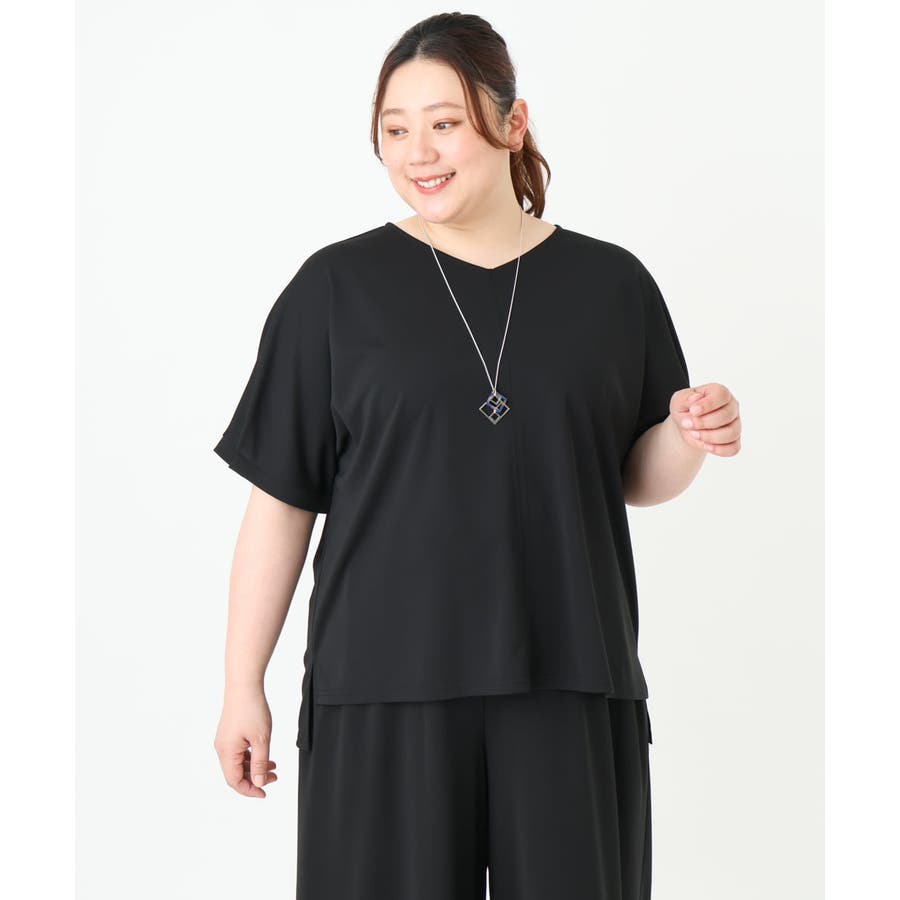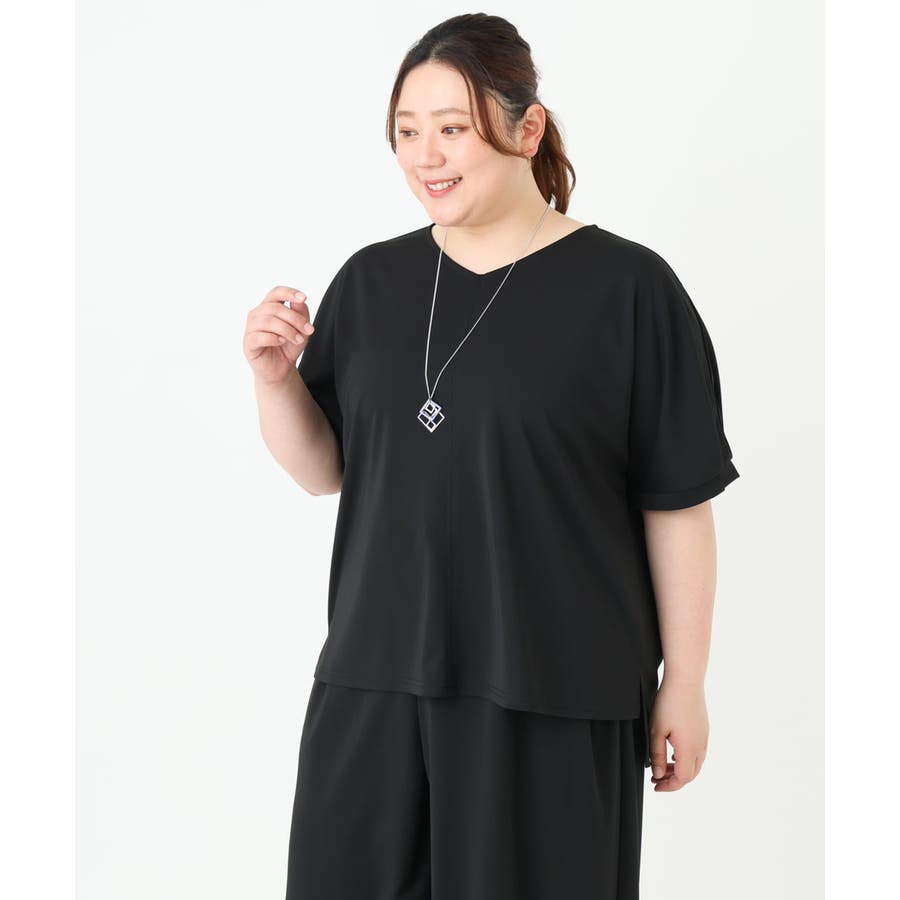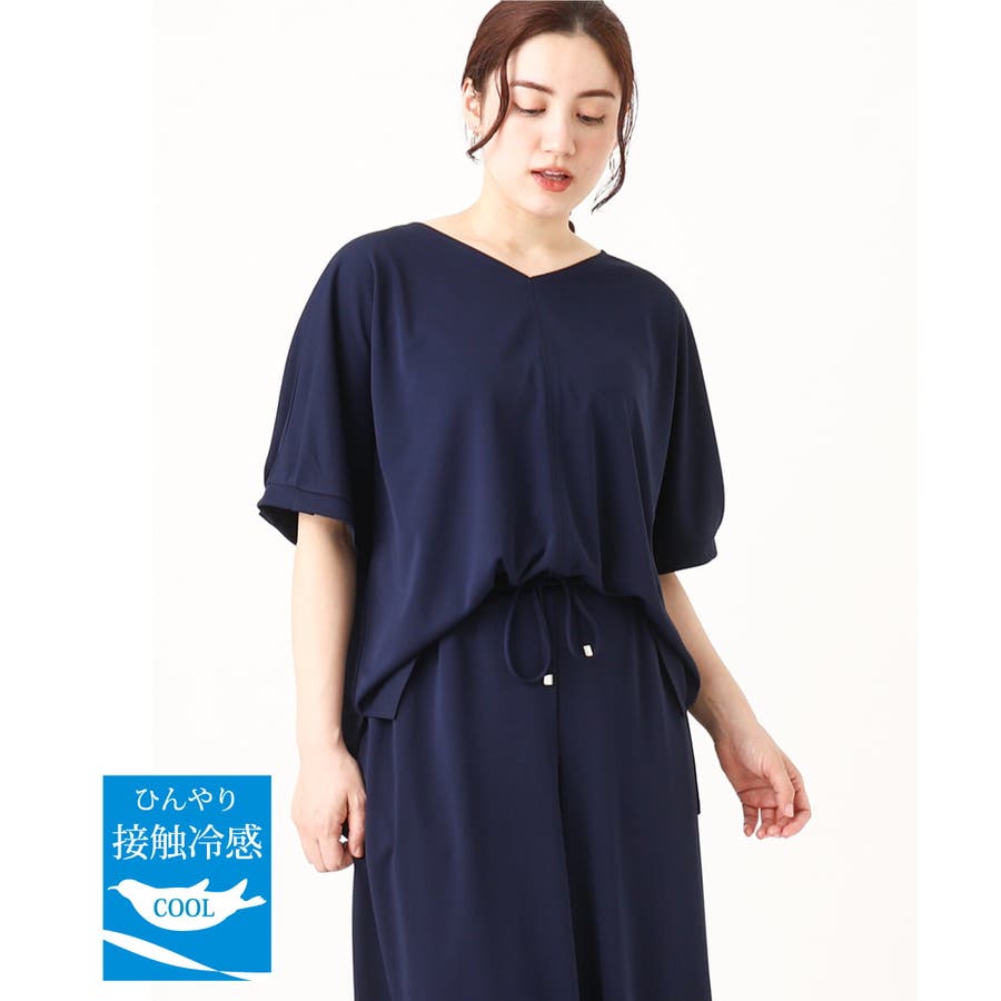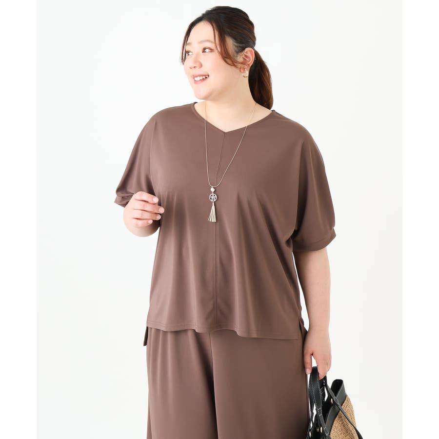【大きいサイズ/接触冷感/セットアップ対応】Vネックジャージートップス